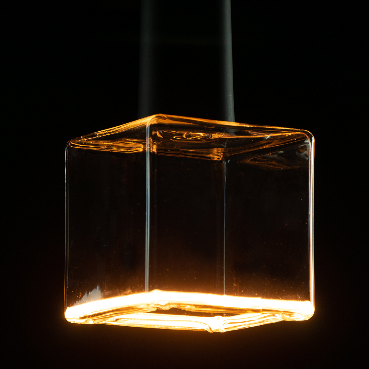 Bei den Filamentlampen der Floating Serie, zu denen auch die LED Floating Cube zählt, sind die Filamente in der Weise im Glaskörper platziert, dass sich der Anschein ergibt, als würde das Leuchtmittel schweben. Energieeffizienz, eine lange Lebensdauer und der hohe Farbwiedergabeindex tragen ihr Übriges zur hohen Qualität der Segula Lampen bei.