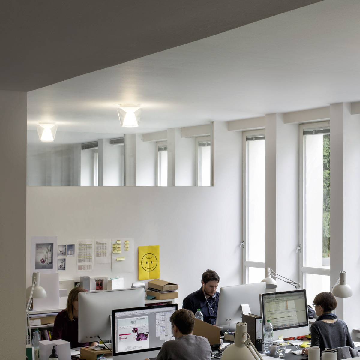 - Deckenleuchte für eine nach unten gerichtete sowie rundum gestreute, wahlweise dekorative Lichtausstrahlung