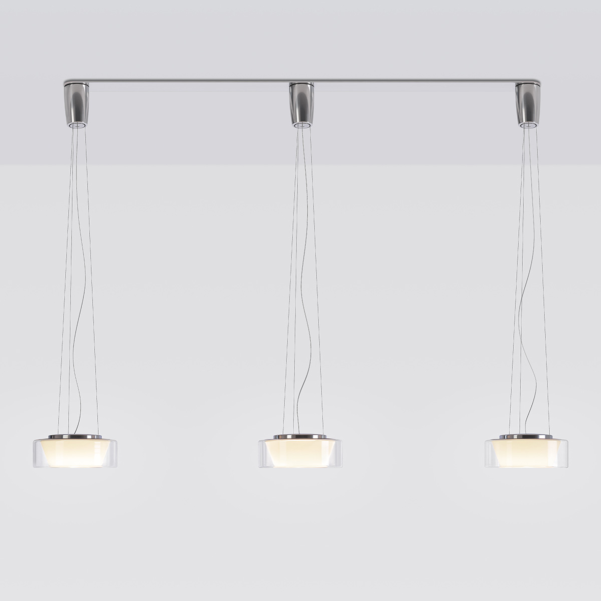 Serien.lighting Baldachinprofil 3 für Pendelleuchten, Aluminium gebürstet (Skizze mit drei befestigten Pendeln)