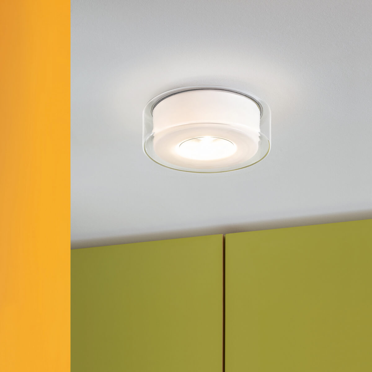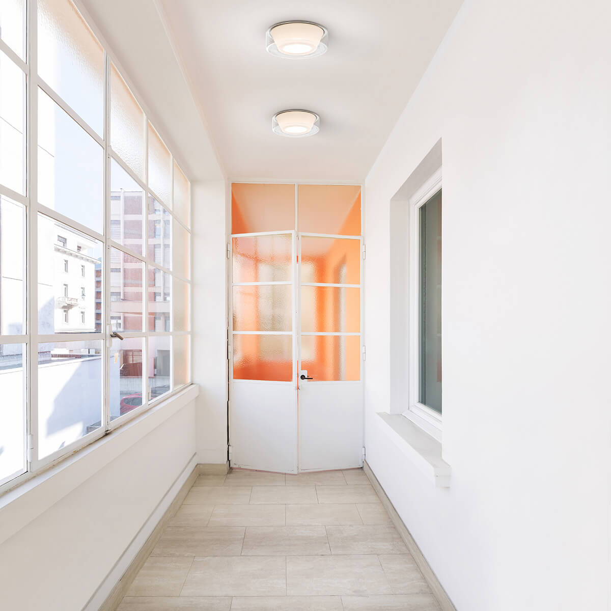 Die serien.lighting Curling Ceiling M LED verfügt über einen Lampenschirm aus Acrylglas oder mundgeblasenem Glas, der je nach Ausführung klar, opal oder silbern gehalten ist. Auf Wunsch ist die Lampe mit einem inneren Reflektor ausgestattet, der eine optimale Lichtlenkung und ein angenehm weiches Licht gewährleistet. Hierdurch kombiniert das Produkt ein effizientes Direktlicht mit stimmungsvoller Raumbeleuchtung.