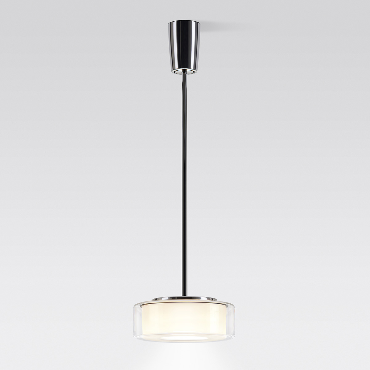 Der Schirm der serien.lighting Curling Suspension Tube M LED ist aus Acrylglas oder mundgeblasenem Glas gefertigt und je nach Ausführung opalweiß, glasklar oder silberfarben. Auf Wunsch ist die Leuchte mit einem inneren Reflektor aus Polycarbonat ausgestattet, der für eine optimale Lichtlenkung und besonders weiche Lichtausstrahlung sorgt.