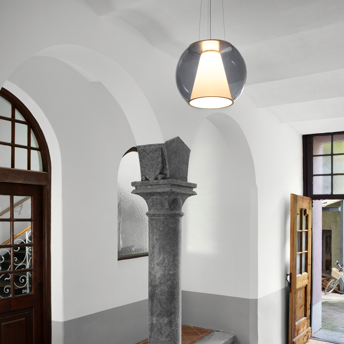 - Mit kugelförmigem Leuchtenschirm aus mundgeblasenem Glas