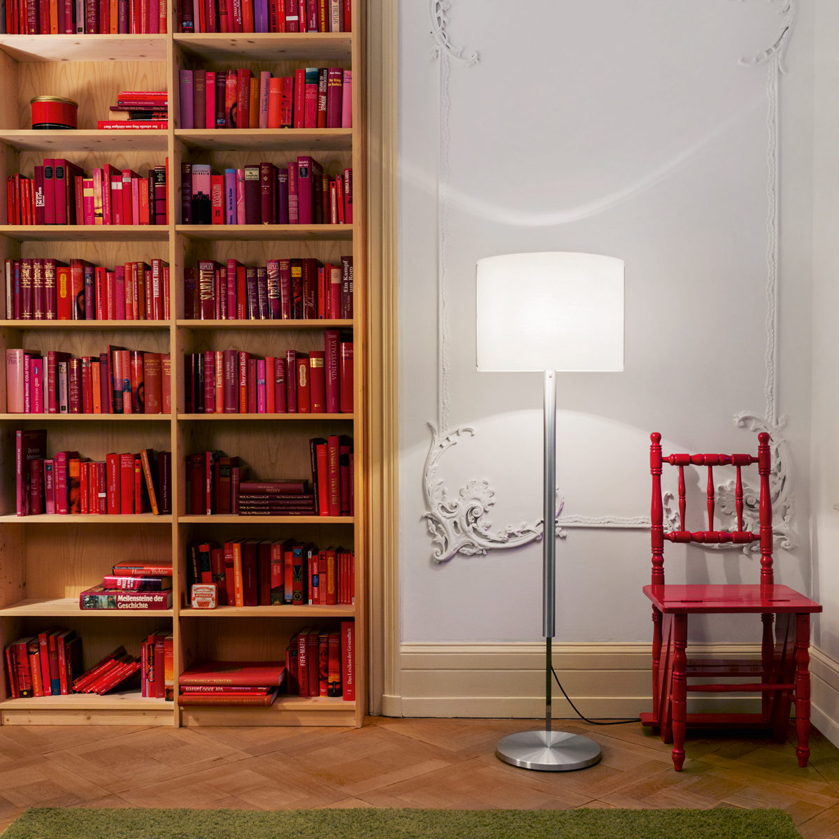 Diesem praktischen Verstellmechanismus verdankt die von Uwe Fischer kreierte serien.lighting Jones Floor L LED ihre vielfältige Anwendbarkeit. Im Wohnbereich macht sie sich ebenso gut wie in repräsentativen Büros, Kanzleien oder Empfangsräumen. Eine energiesparende LED-Platine ist der Leuchte integriert und erzeugt bei hohem Farbwiedergabeindex ein lichtstarkes Licht von warmweißer Farbtemperatur.