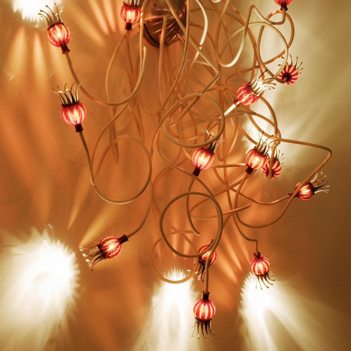 - Blütenförmige Schirme aus mundgeblasenem Glas