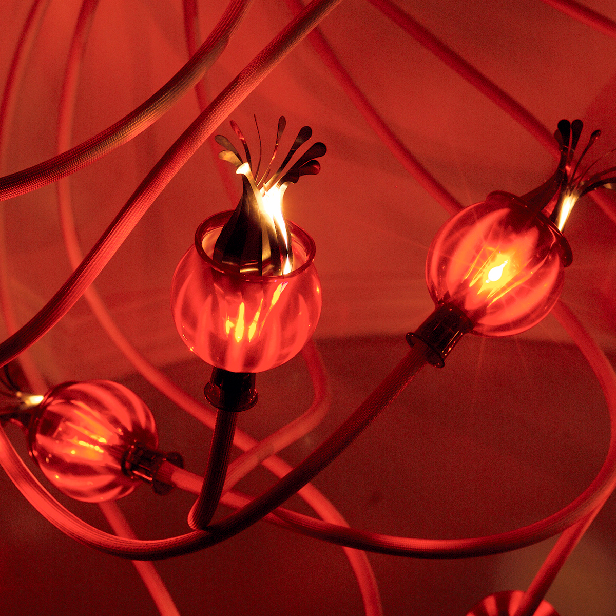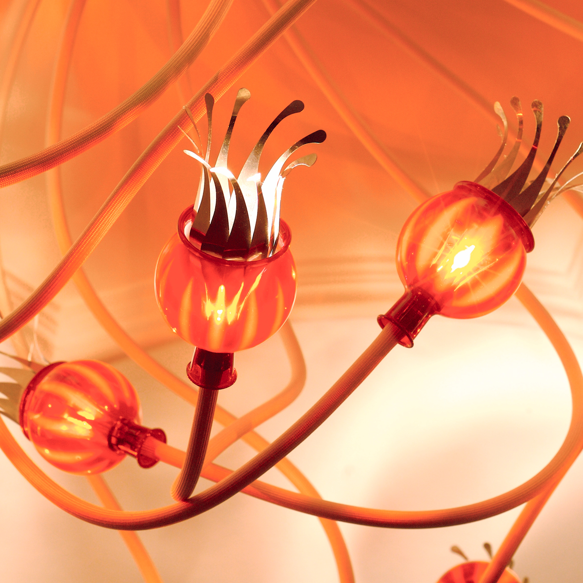 - Künstlerisch anmutendes Lichtobjekt mit Schirmen aus mundgeblasenem Glas