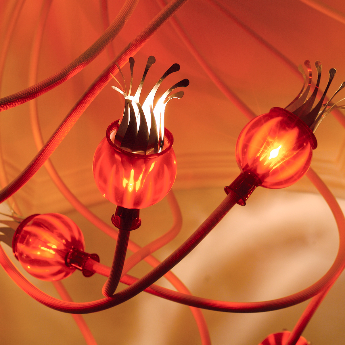 Serien Lighting Poppy, Schirm: rot, Arm: beige (Detailbild)
