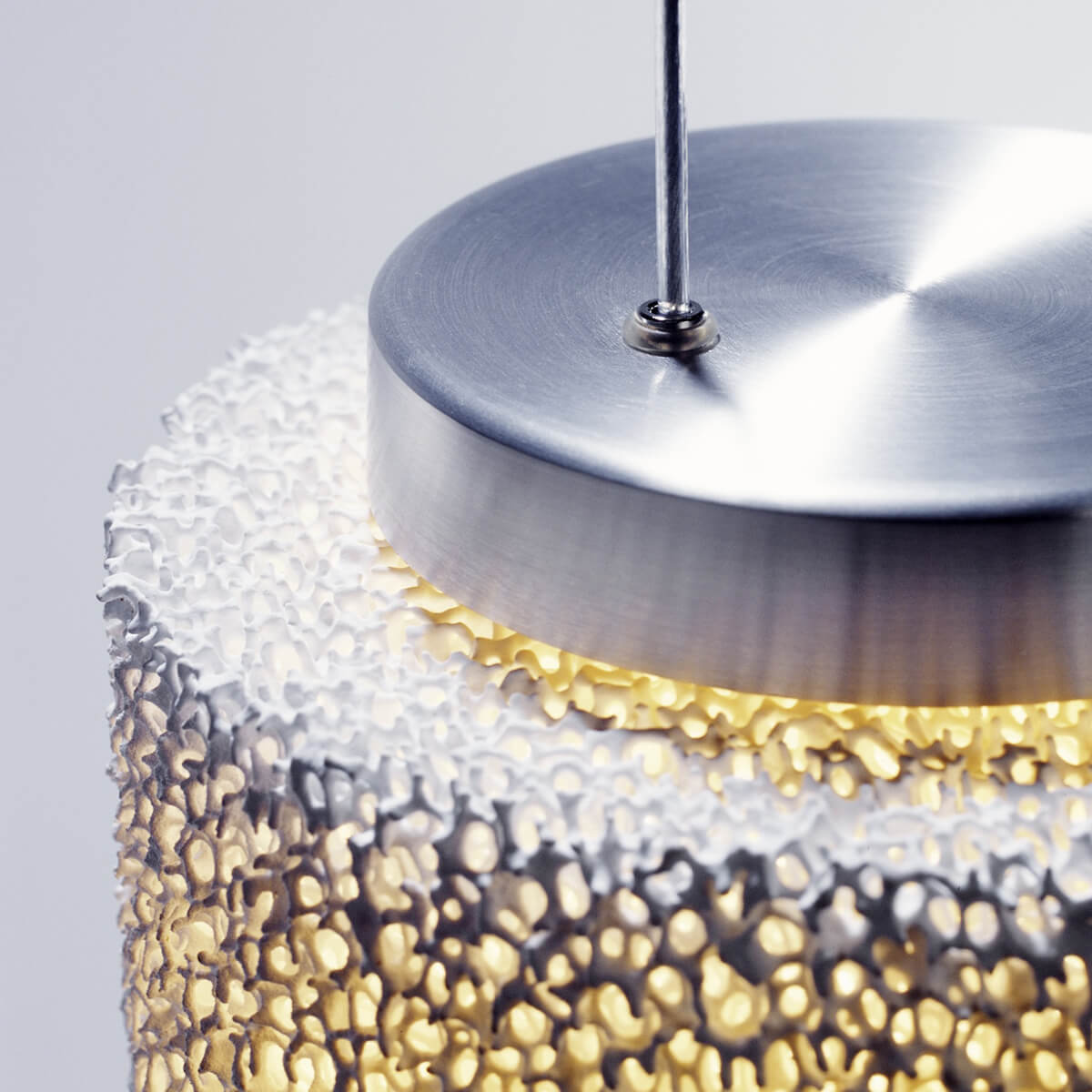 - Die korallenartigen Schirme erzeugen ein sanftes Streulicht mit Bone-China-Farbton