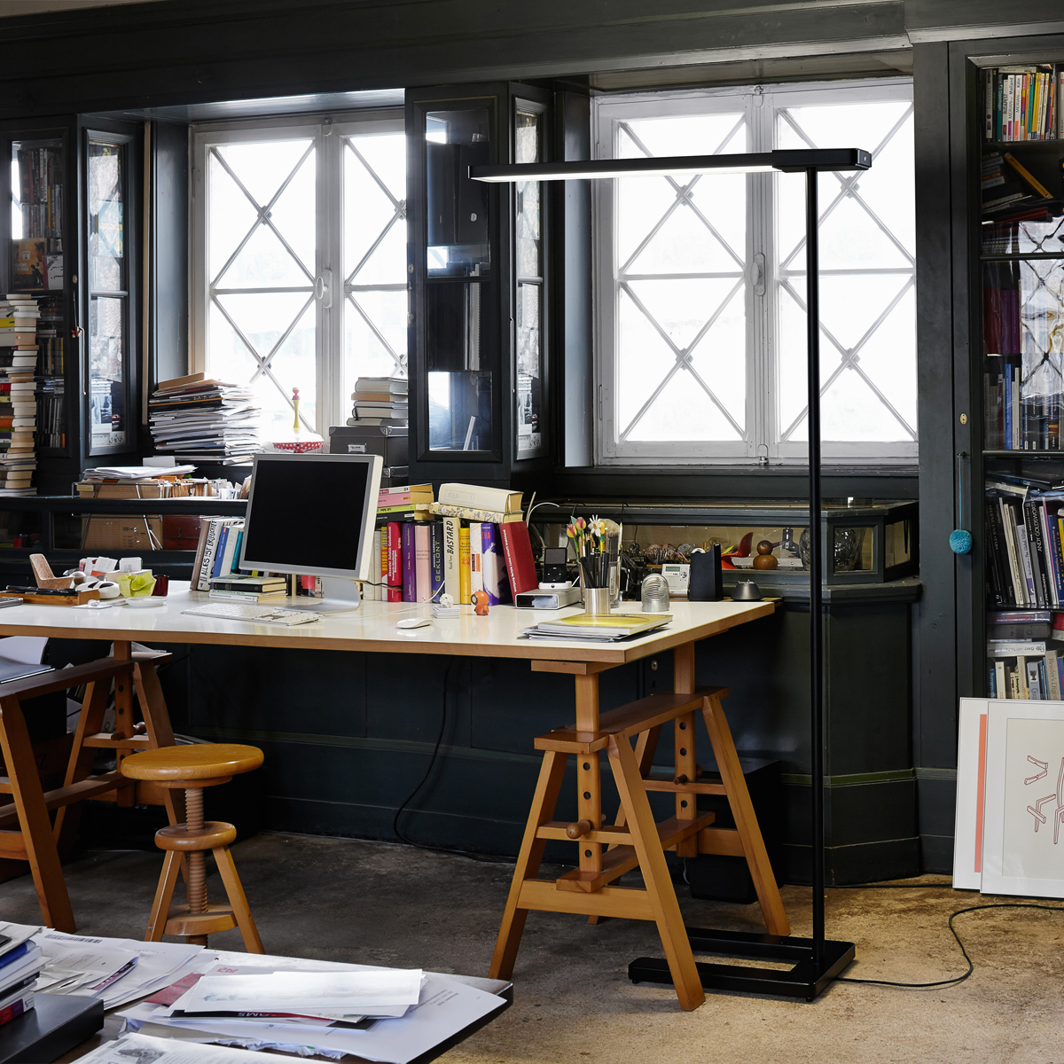- Formalästhetisch hochwertige Stehleuchte zur effizienten Arbeitsplatzbeleuchtung