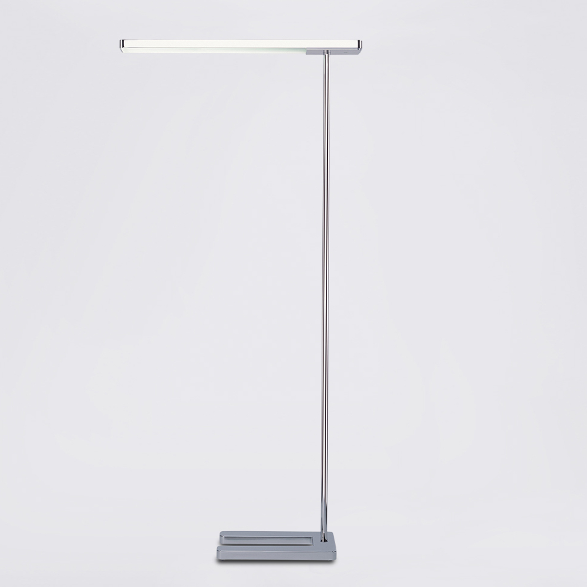 Erhältlich ist die Stehlampe in vier verschiedenen Farben: als pulverbeschichtetes Modell in den Farben Silber, Schwarz und Weiß sowie als glanzverchromte Ausführung mit silberbeschichtetem Sockel. Dies unterstreicht das auf Minimalismus bedachte Designkonzept und macht die Leuchte zu einer zeitlos schönen Lichtquelle.