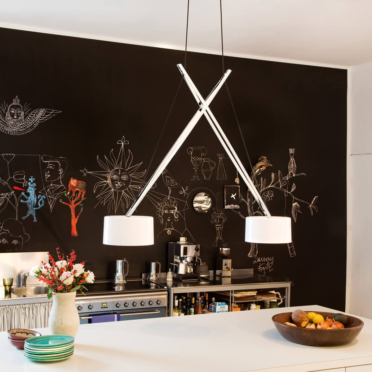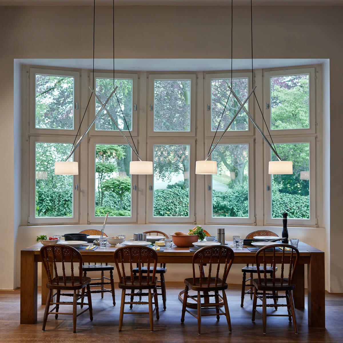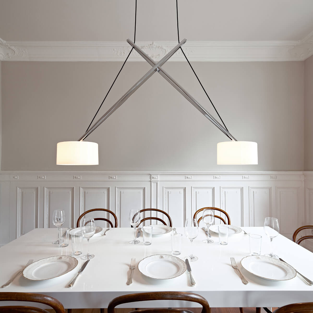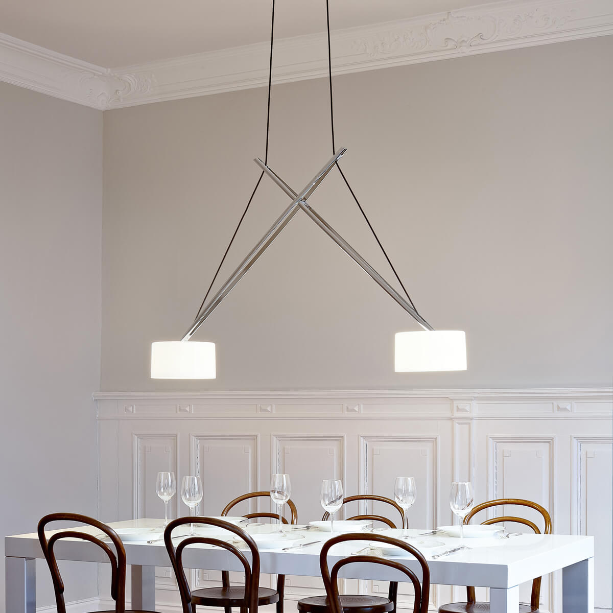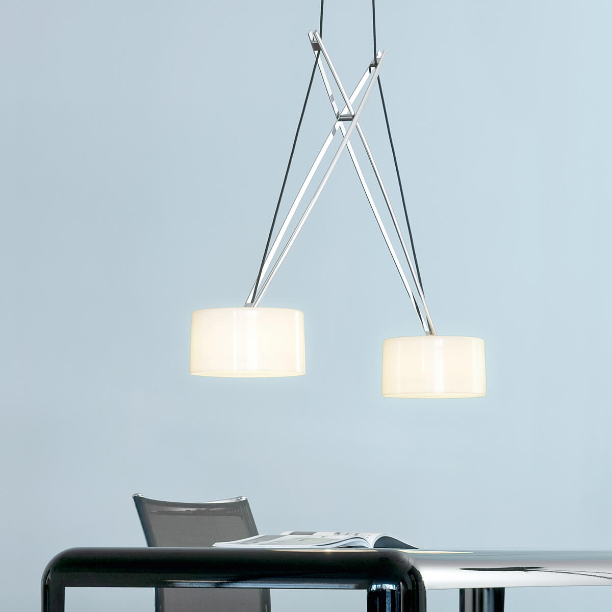 Serien.lighting Twin Suspension, Chrom, Schirme: Acrylglas (©Ingmar Kurth)