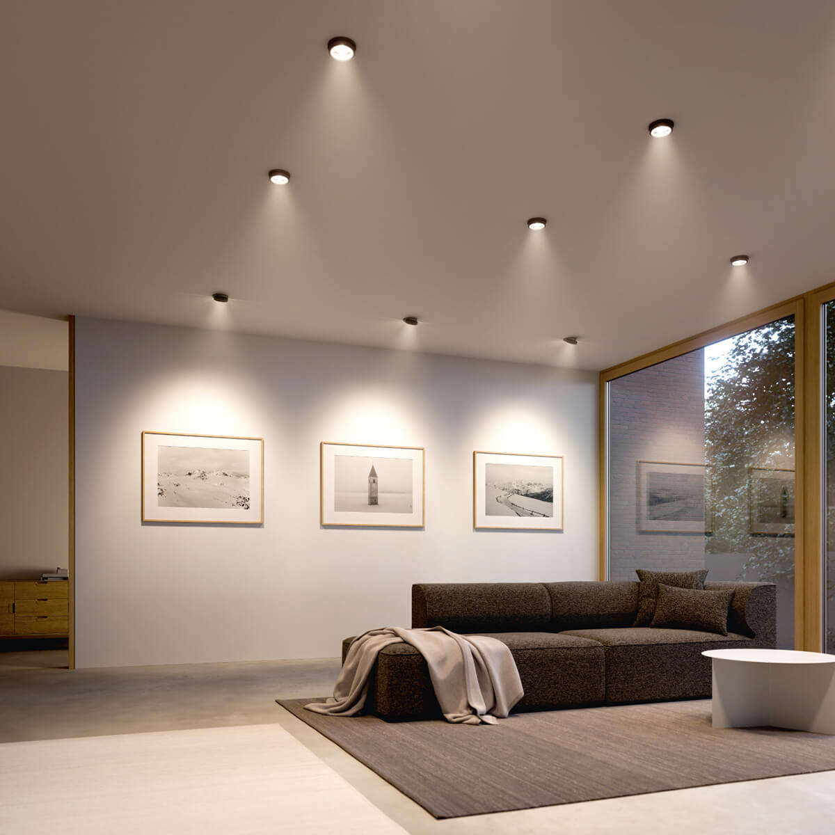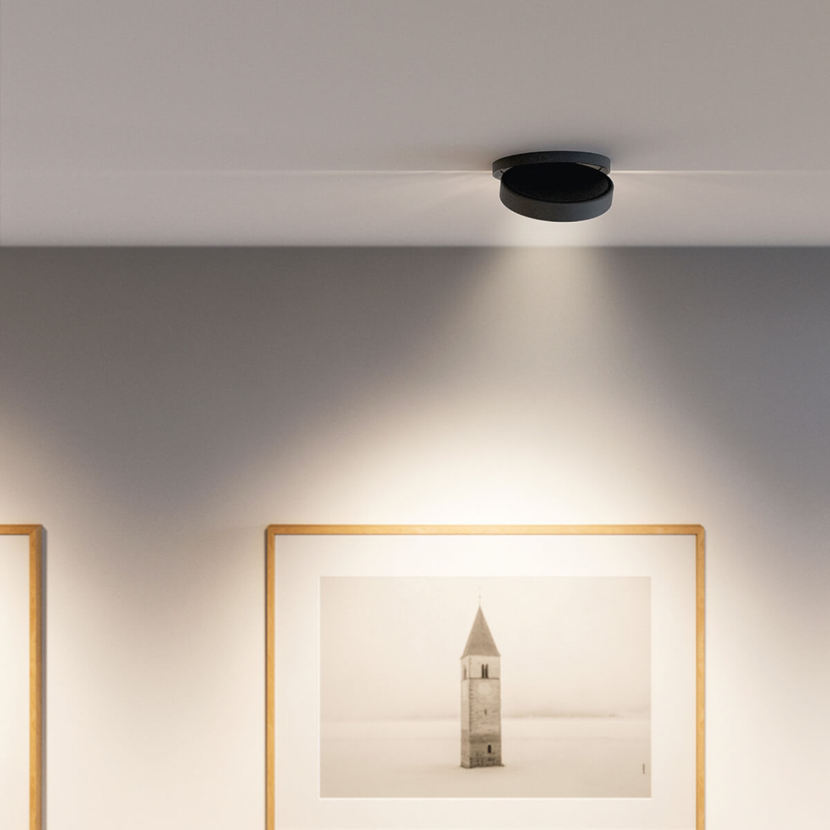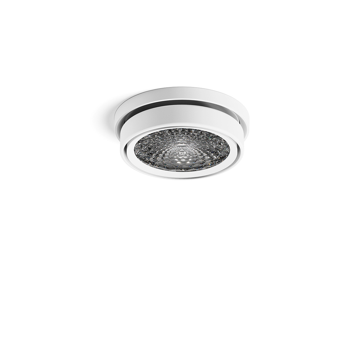 Die Einbau-Deckenleuchte ist in zwei Halbwertswinkeln verfügbar: 36° und 50°. Während der breitere Abstrahlwinkel großflächige Bereiche homogen ausleuchtet, erlaubt der engere Winkel eine gezielte Beleuchtung und schafft definierte Abgrenzungen zwischen hellen und dunklen Zonen. Da das Linsenmodul um bis zu 45° geneigt und um 360° gedreht werden kann, lässt sich der Lichtschwerpunkt präzise ausrichten. Dies macht den Strahler zu einem vielseitigen Werkzeug in jeder professionellen Lichtplanung.