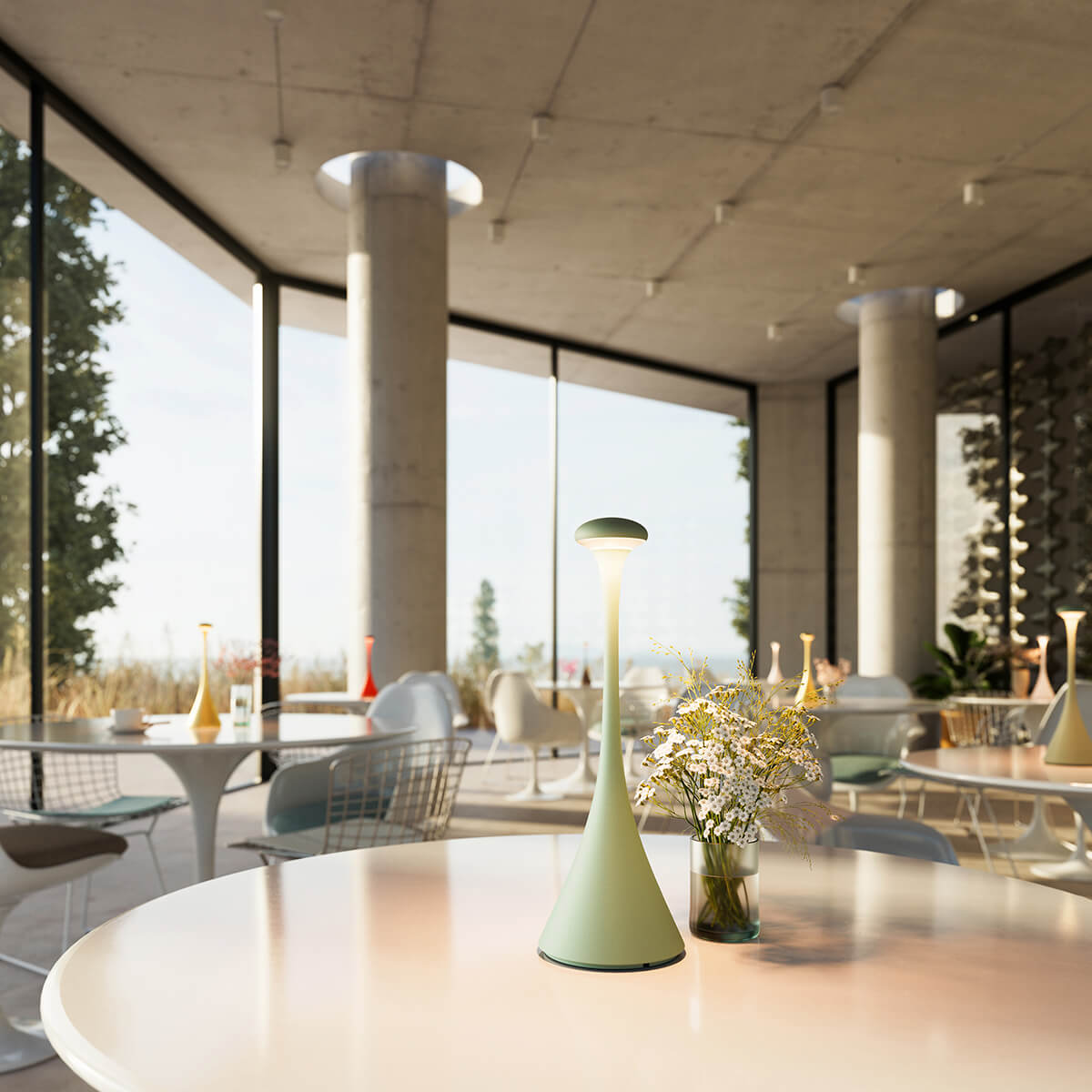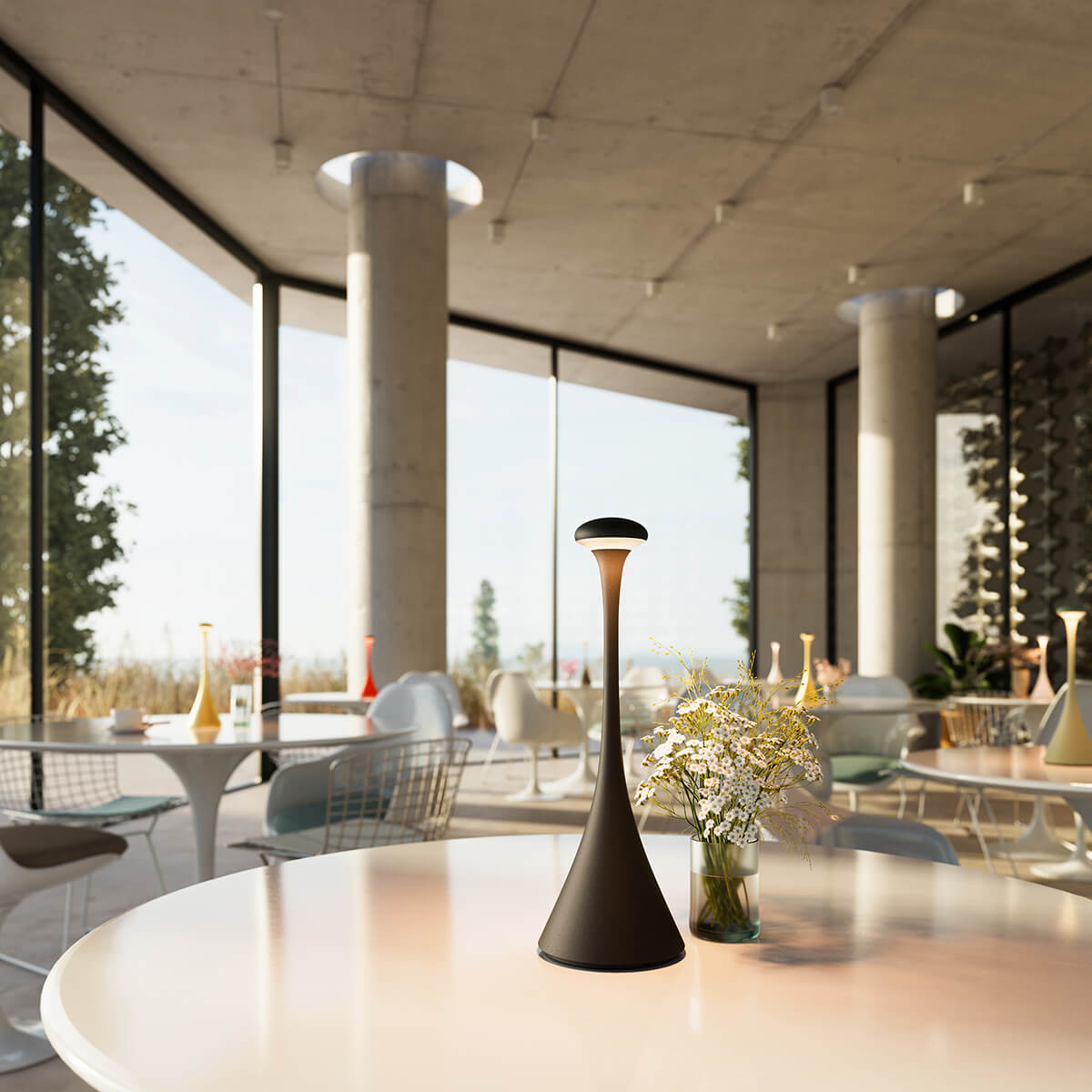 Die schöne Akkulampe überzeugt durch ihre enorme Leuchtkraft, die trotz ihrer kompakten Form wesentlich größere Lampen in den Schatten stellt. Sie ist vielseitig einsetzbar und passt in jede Umgebung – ob am Bistrotisch, beim Dinner mit Freunden oder beim Entspannen auf dem Balkon. Der schmale Kopf und die breite Standfläche sorgen dafür, dass die Nudrop stets einen sicheren Stand hat.