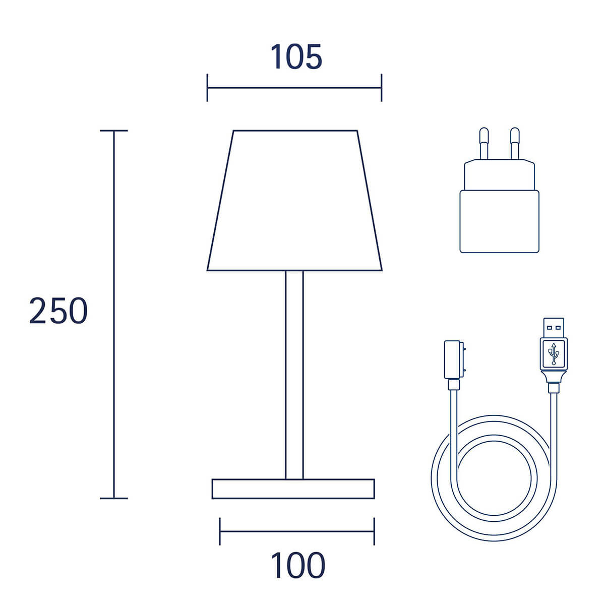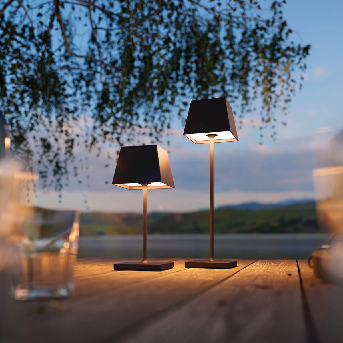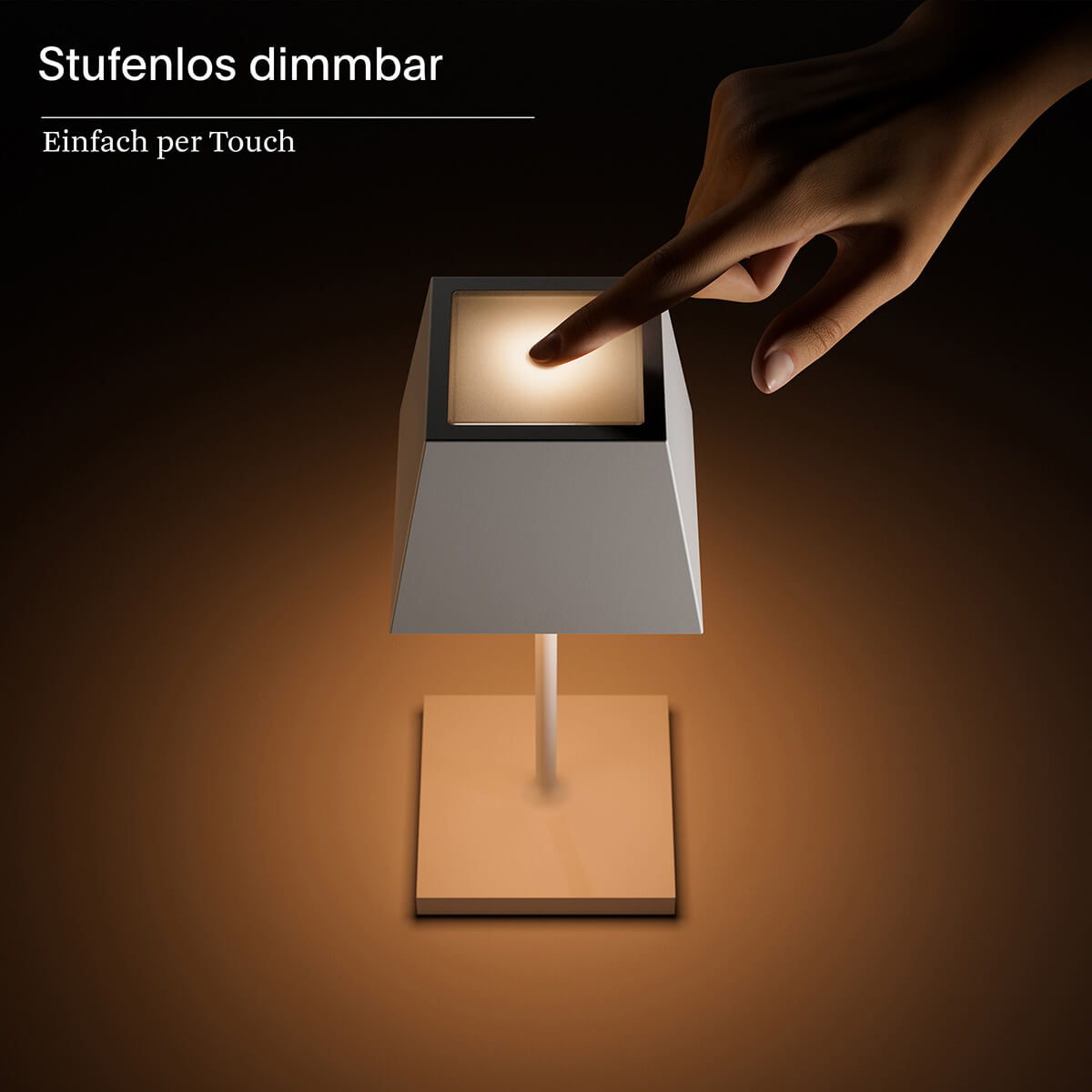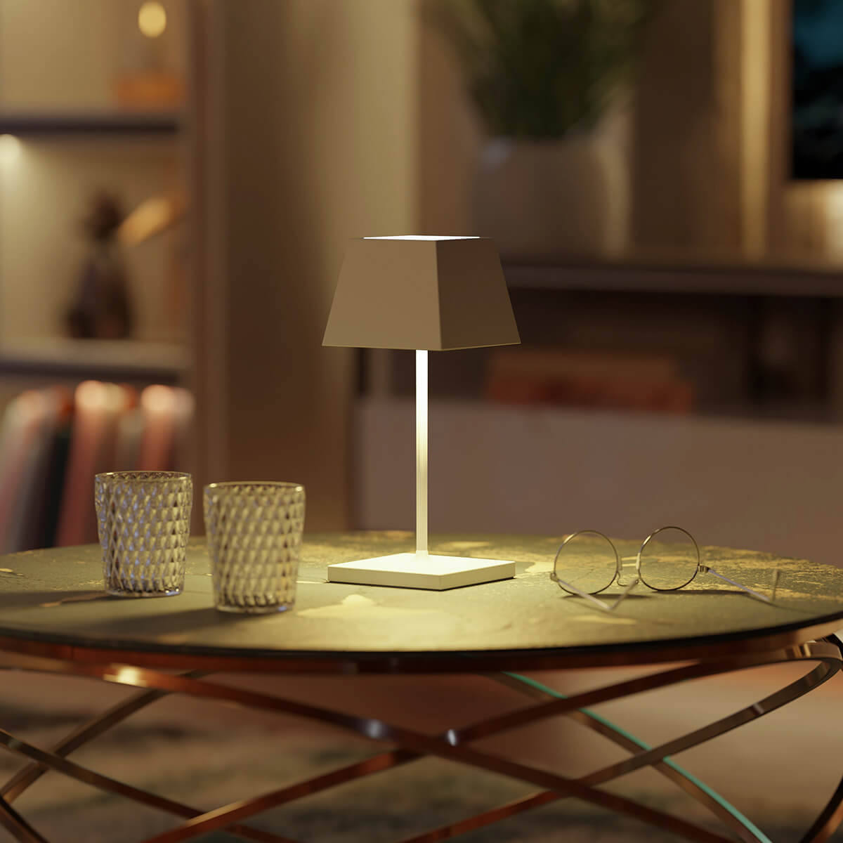 - Kabellose, mobile Tischlampe mit eckigem Lampenschirm