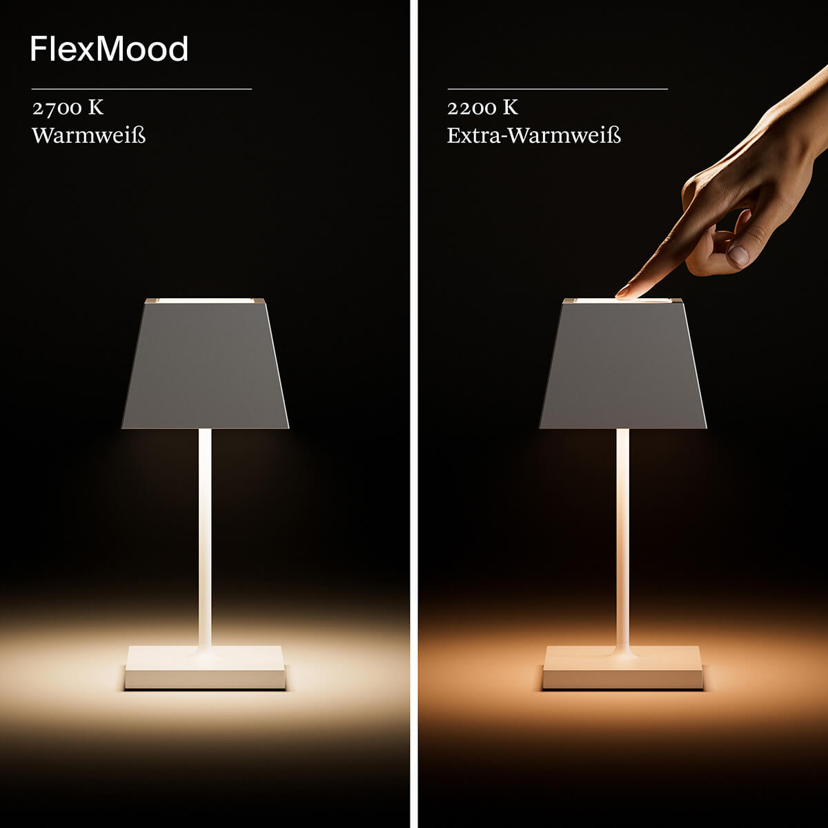 - Umschaltbare Lichtfarbe (2.200/2.700 K) dank Flex-Mood-Feature