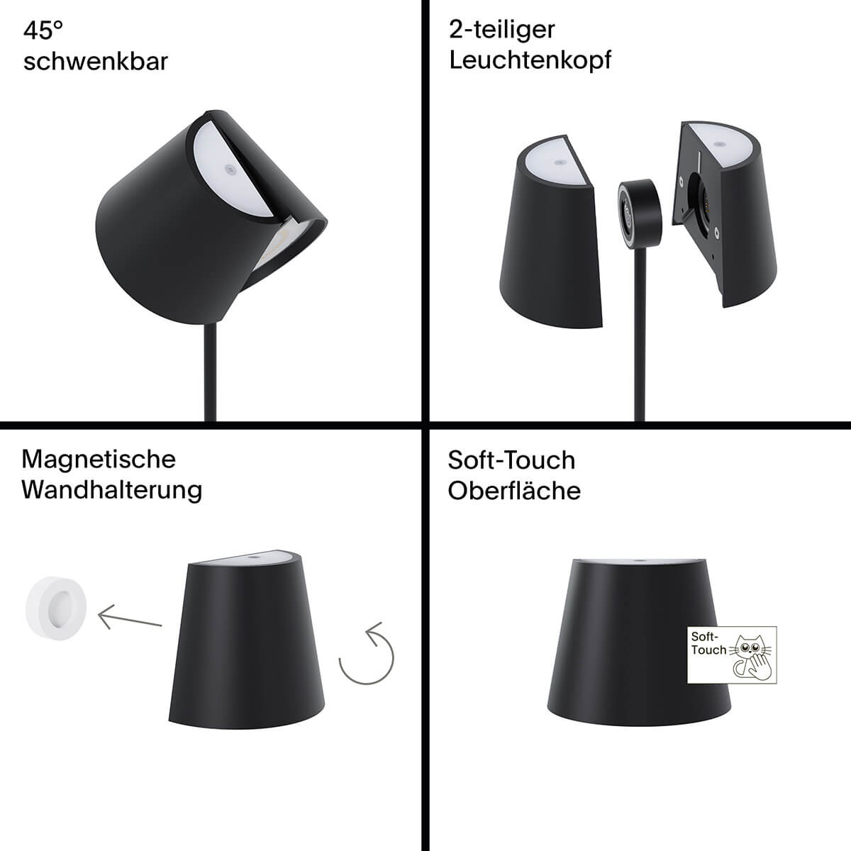 - Kabellose Tischlampe mit 2-teiligem, schwenkbarem Kopf