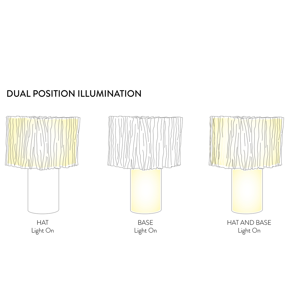 - Direkt- und Indirektlicht sind getrennt voneinander schaltbar (Schirm und Fuß können separat oder gleichzeitig erleuchtet sein)
