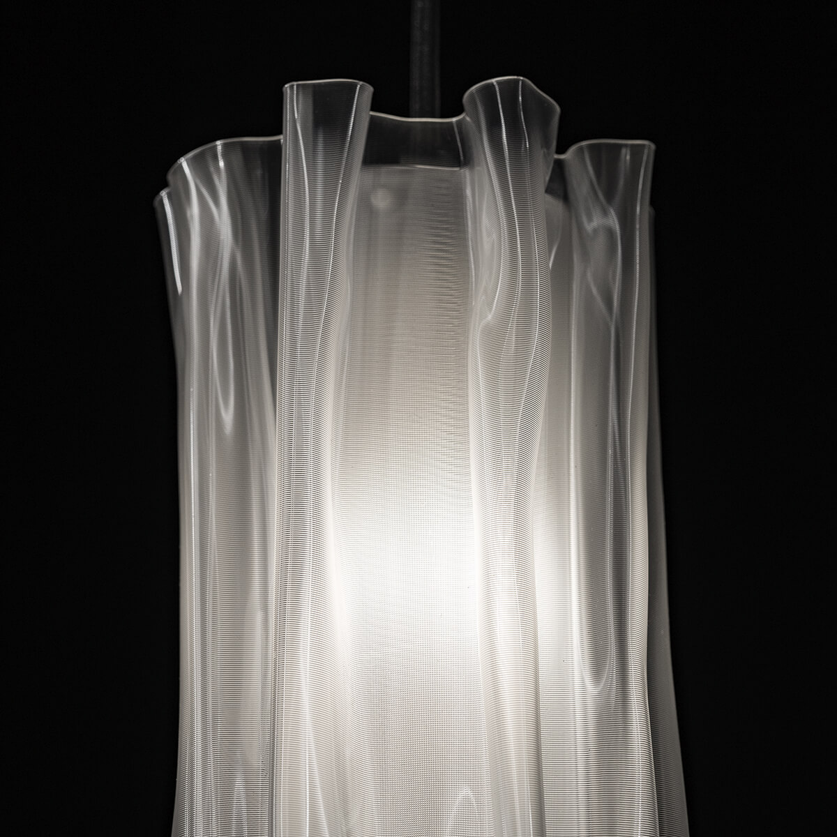 Die Accordéon Vertical Suspension von Slamp, entworfen vom renommierten Designer Marc Sadler, ist eine künstlerisch inspirierte Pendelleuchte, die Ästhetik und Funktion in perfekter Harmonie vereint. Inspiriert von textilen Plissees und den feinen Falten eines Akkordeonbalgs, nutzt die Leuchte die innovativen Technopolymere von Slamp, um ein faszinierendes Spiel aus Licht und Schatten zu kreieren.
