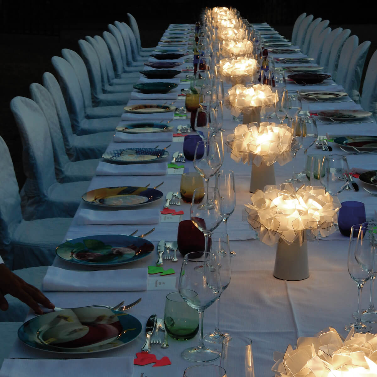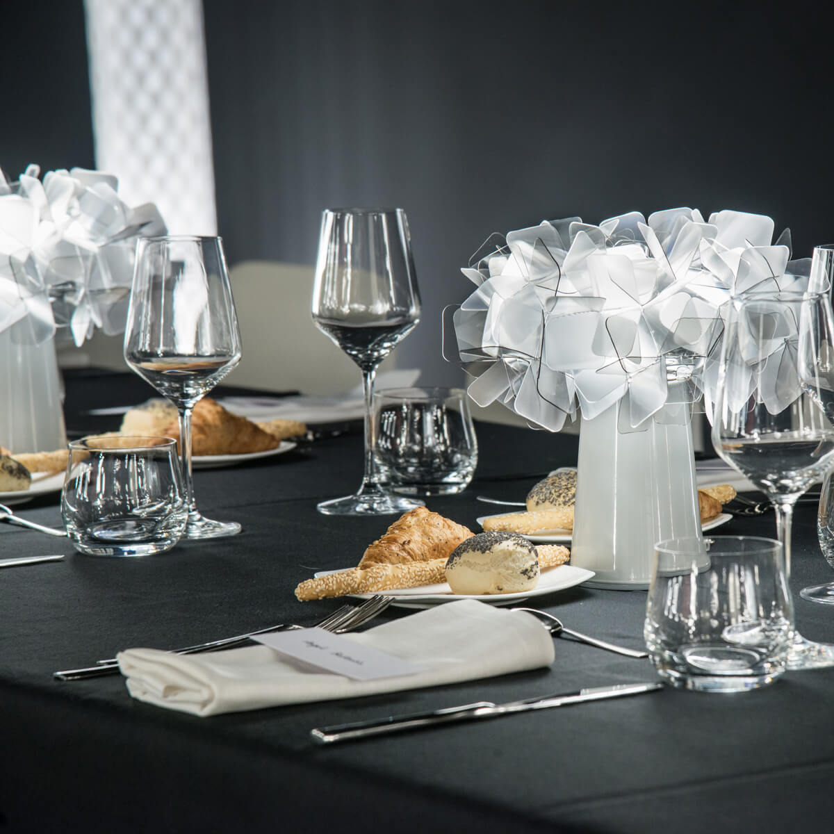 Platzieren Sie die Slamp Clizia Battery LED, wo auch immer Sie mögen, oder nehmen Sie sie mit zum Dinner und romantischen Tête-à-Tête im Freien. Auch in Restaurants und Cafés macht sich die Akkulampe optimal, wenn sie anstelle üblicher Blumengestecke die Tische zum Leuchten bringt.