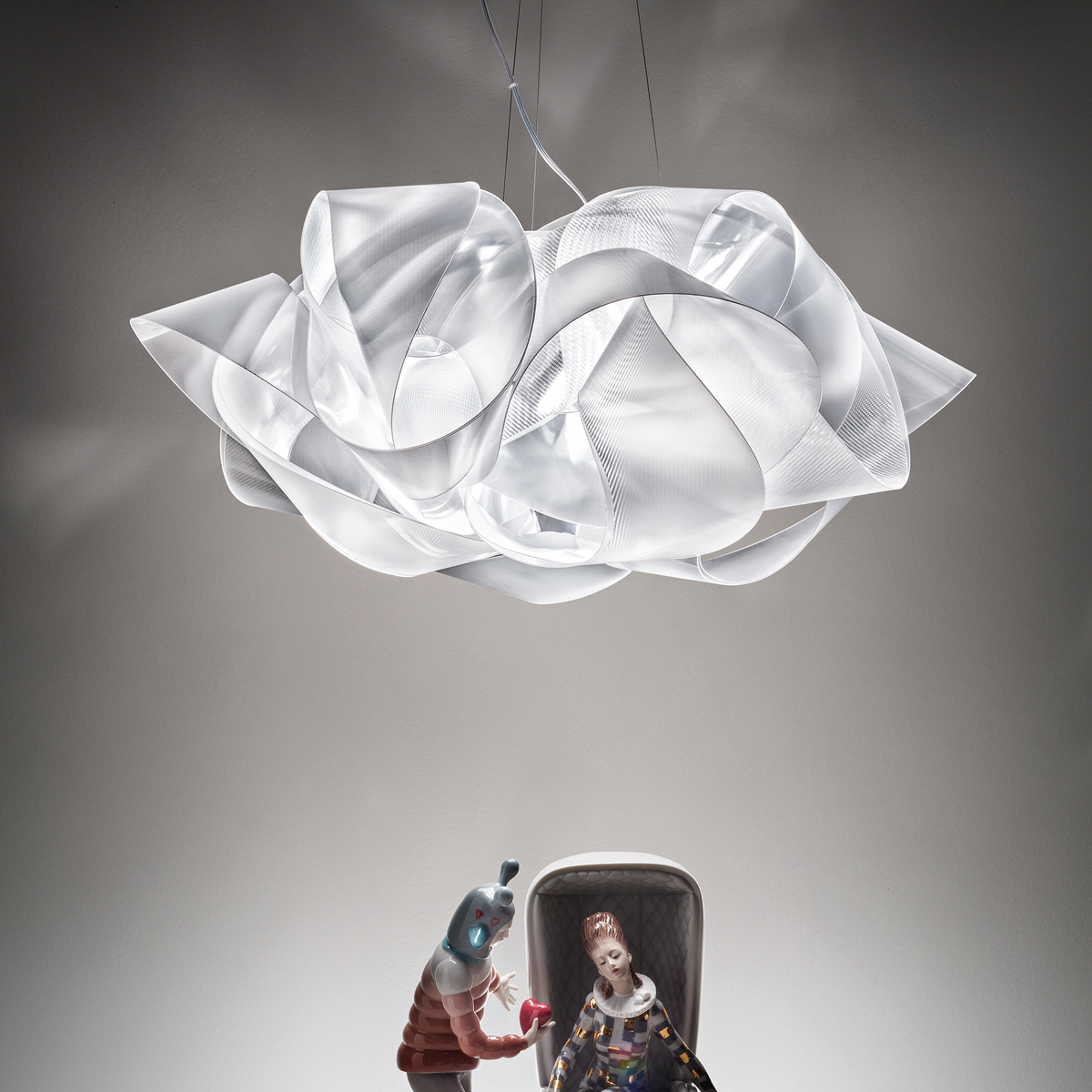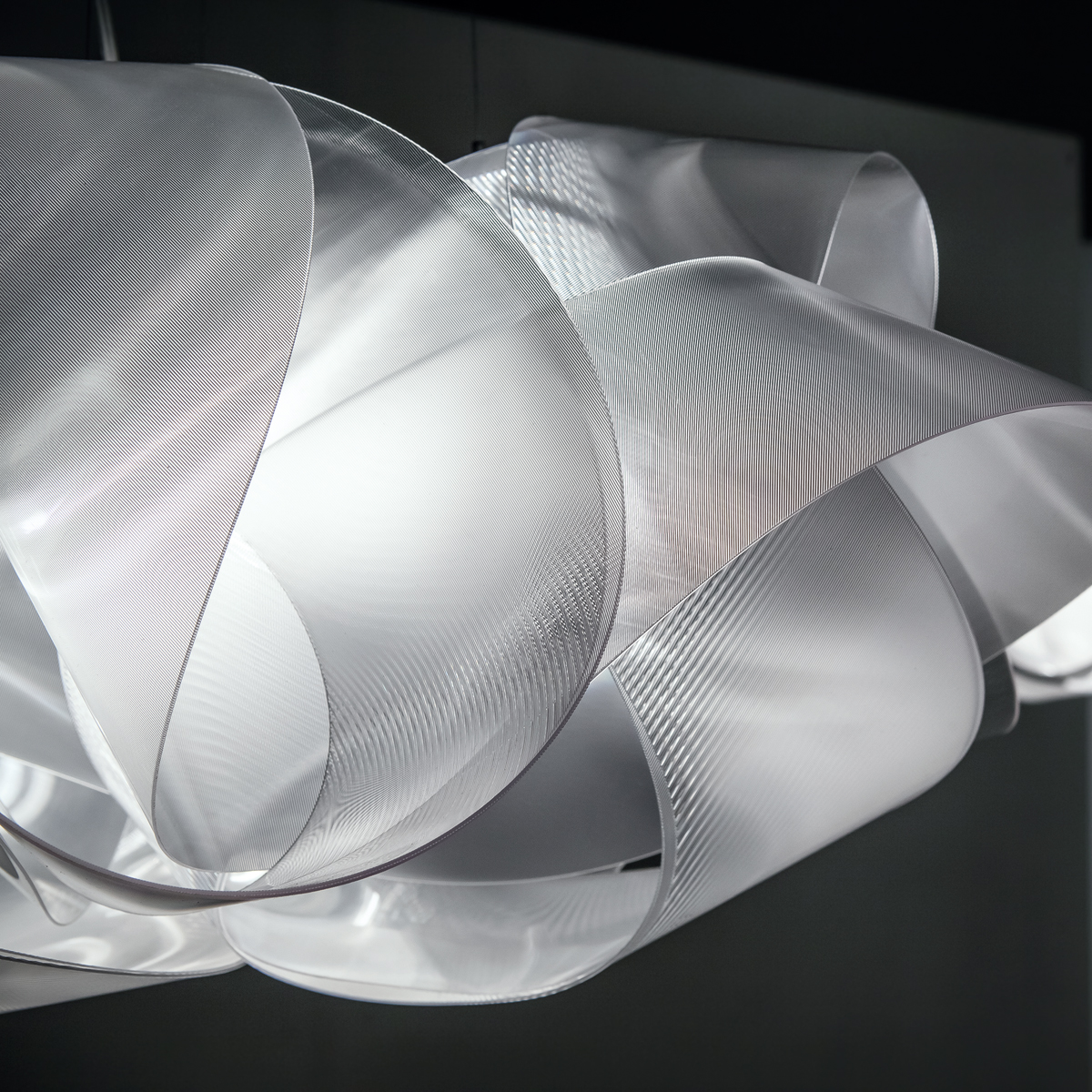 - Kunstvoll verwobene Pendelleuchte aus irisierendem Kunststoff