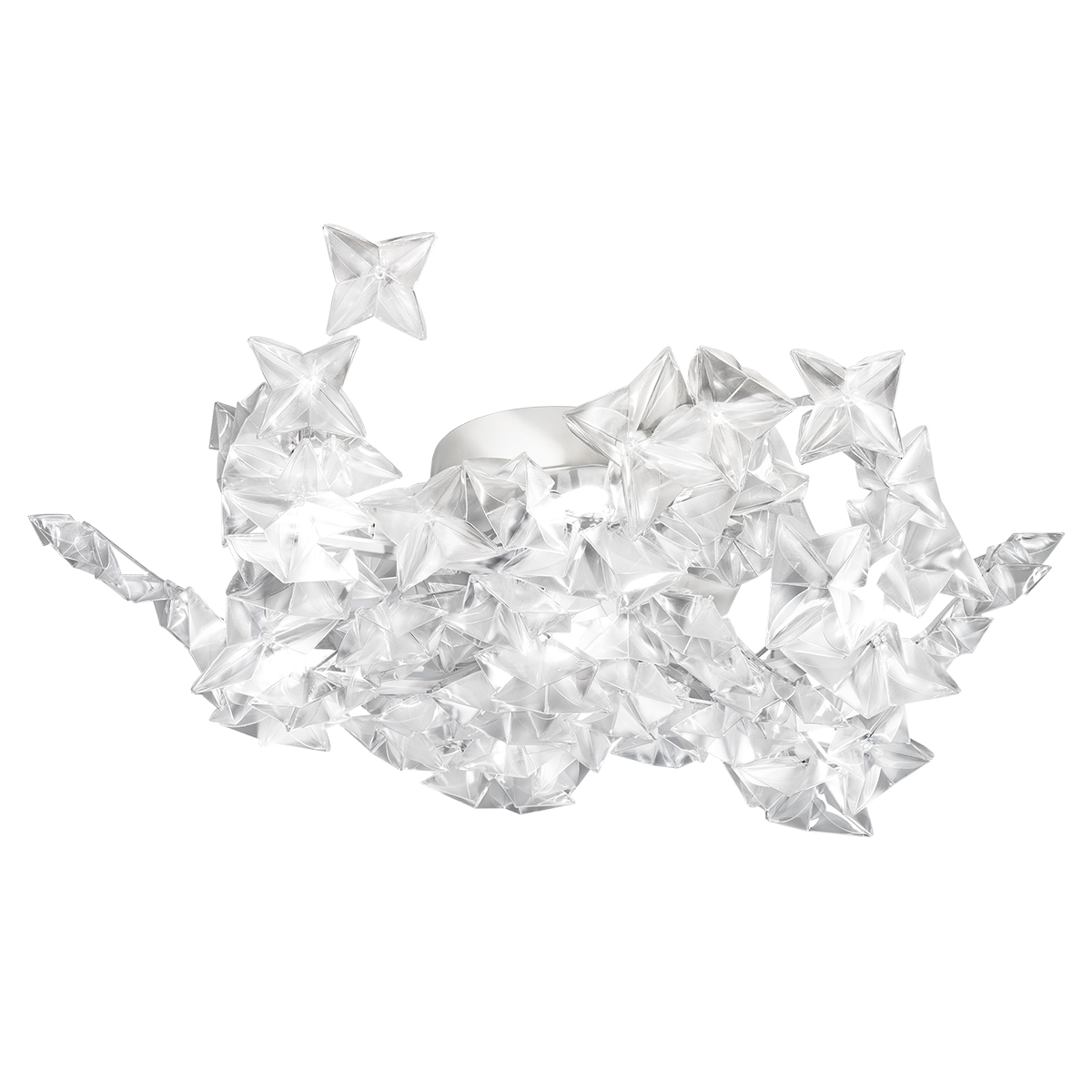 - Mit von Hand plissierten "Blüten" aus irisierendem Kunststoff
