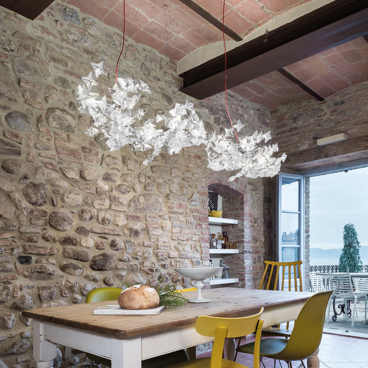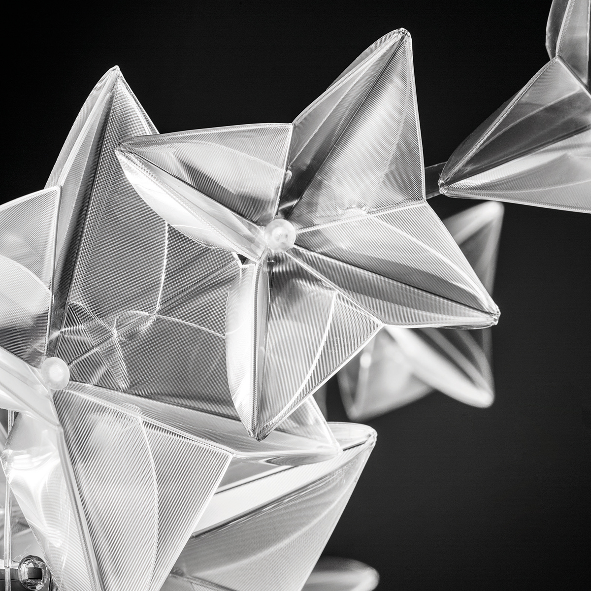 In sorgfältiger Handarbeit im firmeneigenen Werk von Slamp nahe Rom gefertigt, ist jede Hängelampe ein echtes Unikat. Die verwendeten Technopolymere werden mittels umweltschonender Kalt-Schnitt-Technik verarbeitet, was CO2-Emissionen reduziert und zur Nachhaltigkeit der Produktion beiträgt.
