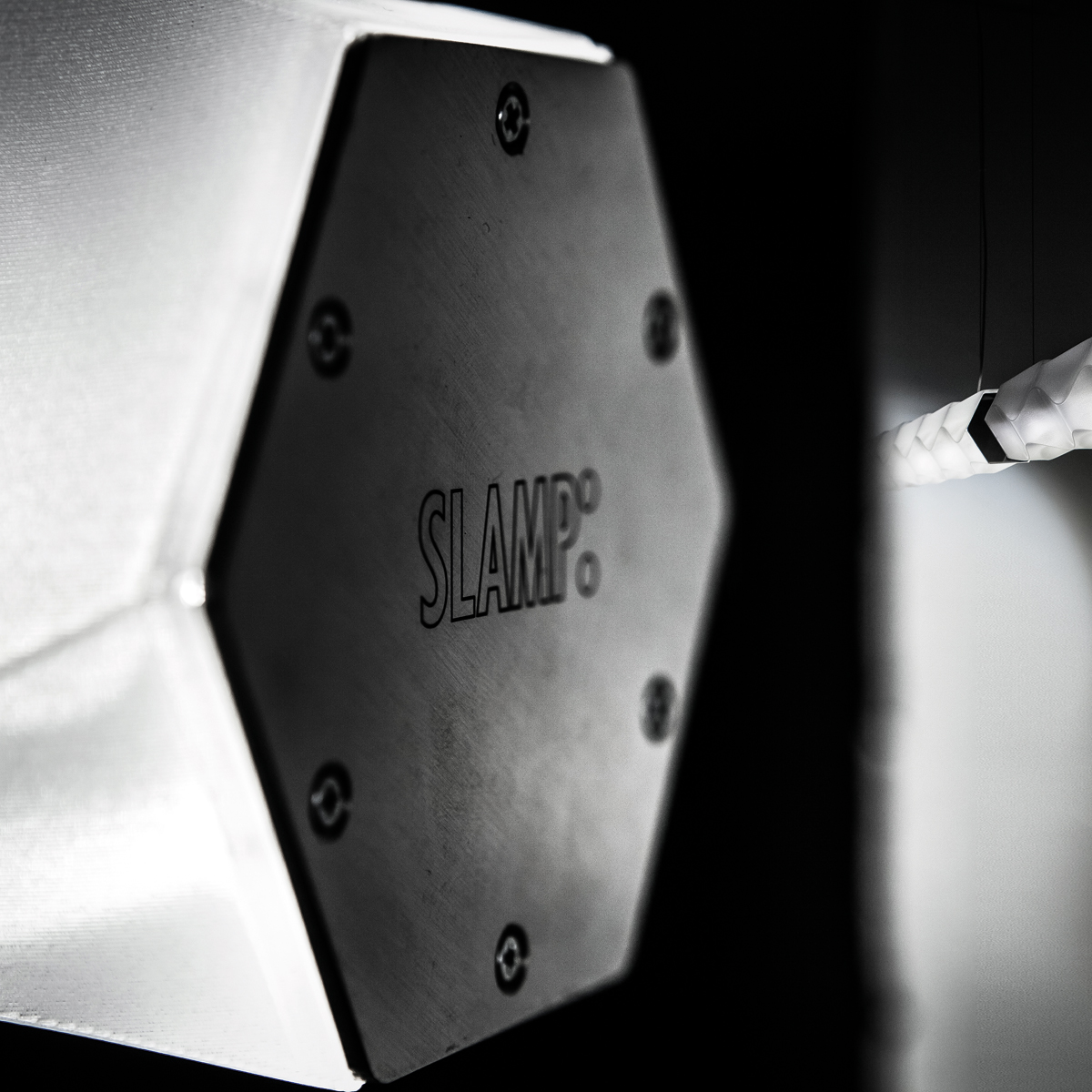 Entwickelt wurde die Slamp Hugo LED Suspension in gemeinschaftlicher Arbeit des Designerteams von Slamp. Für ihr originelles Design wurde die Ausführung Hugo Prisma 2016 mit dem Wallpaper Design Award und 2019 mit dem Reddot Design Award ausgezeichnet.