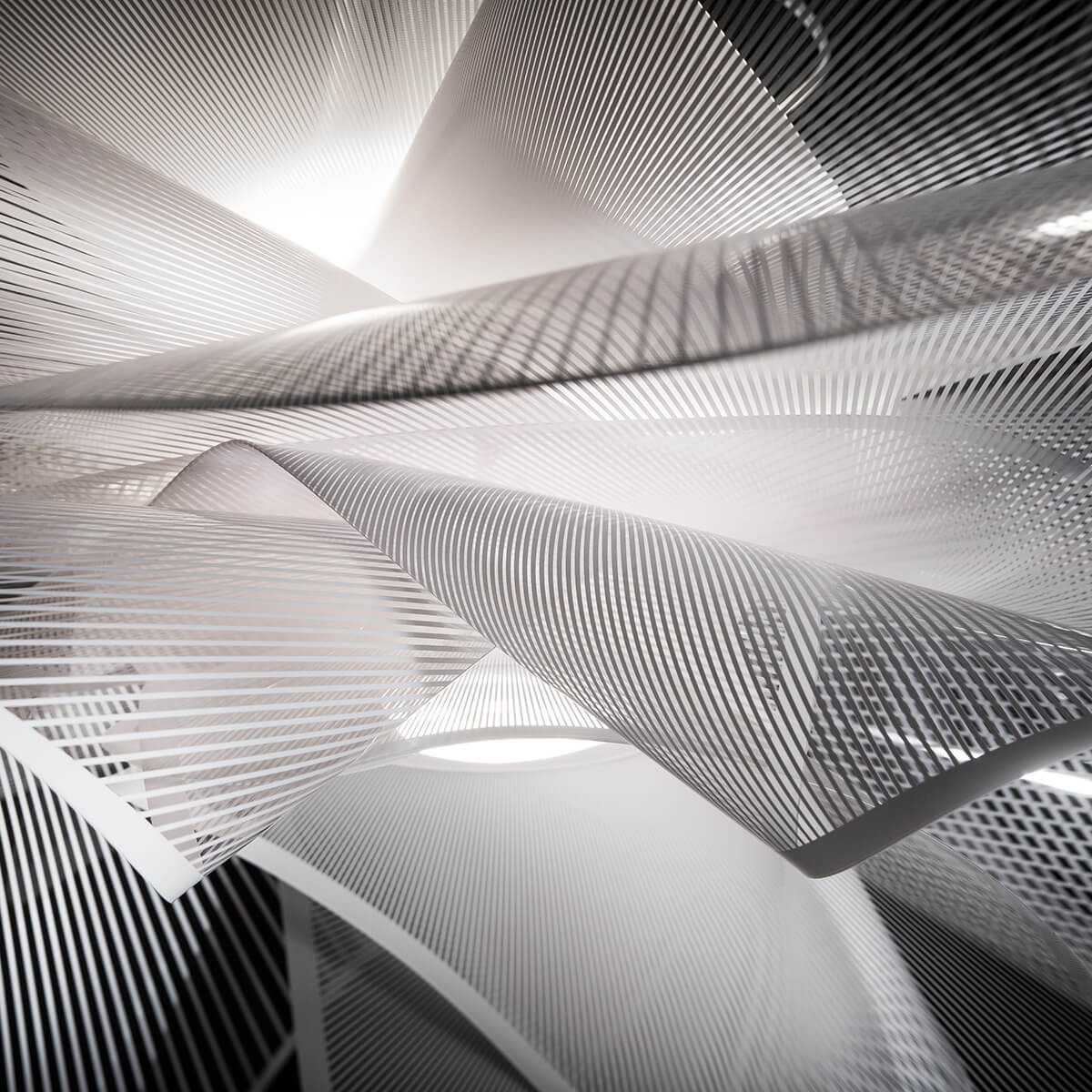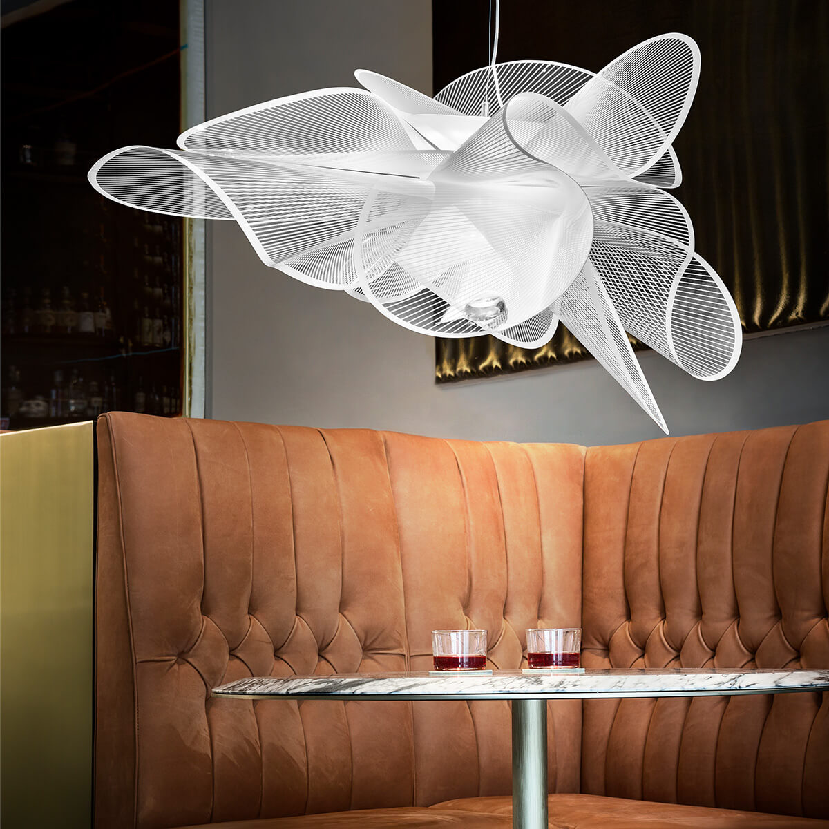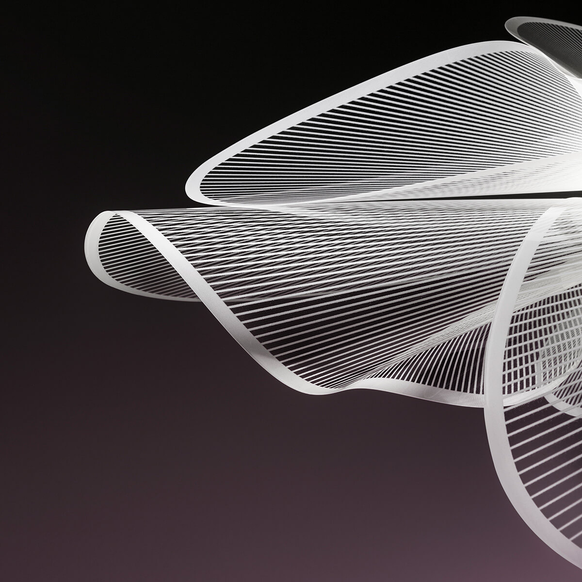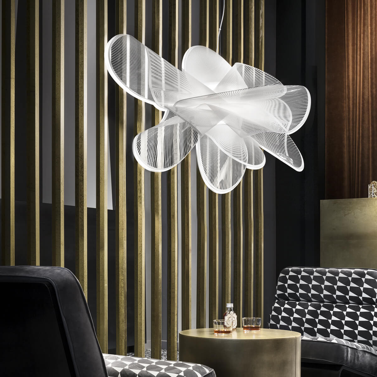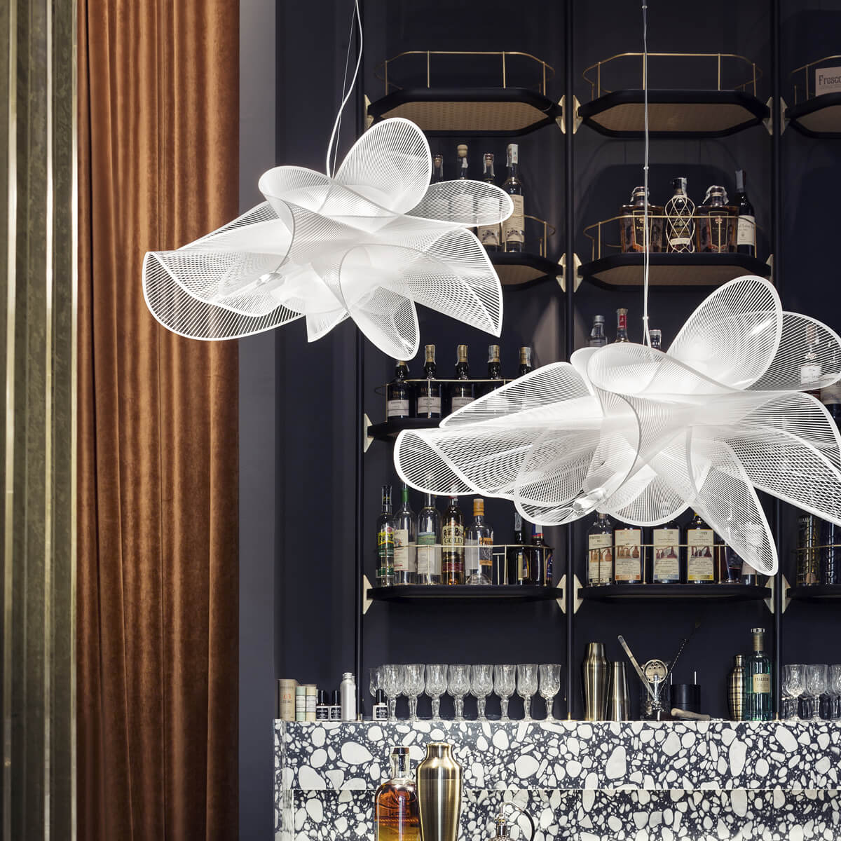 - Skulpturale Pendellampe mit dynamischer Linienführung
