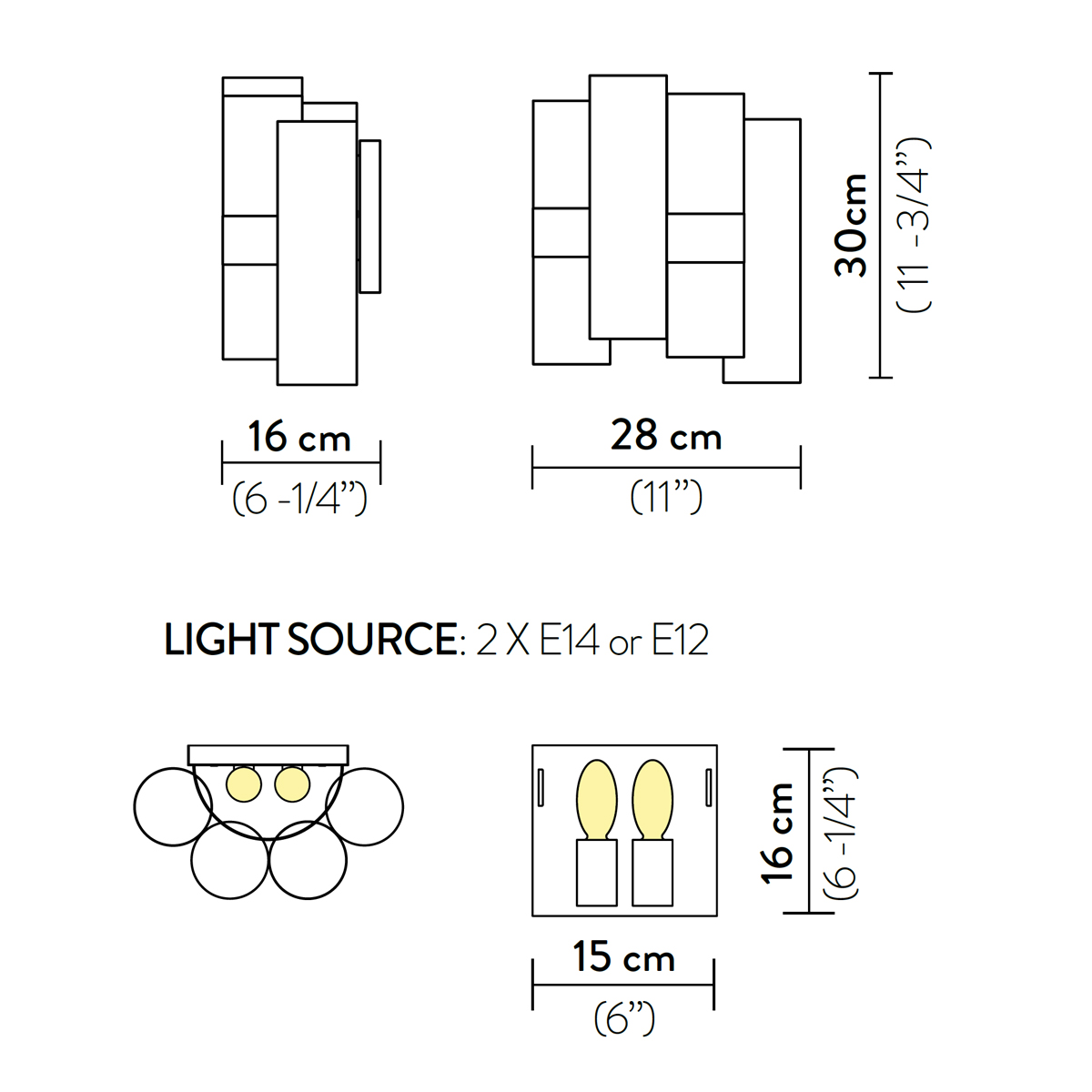 | Fitting: | 2 x 6 W E14 LED Retrofit |