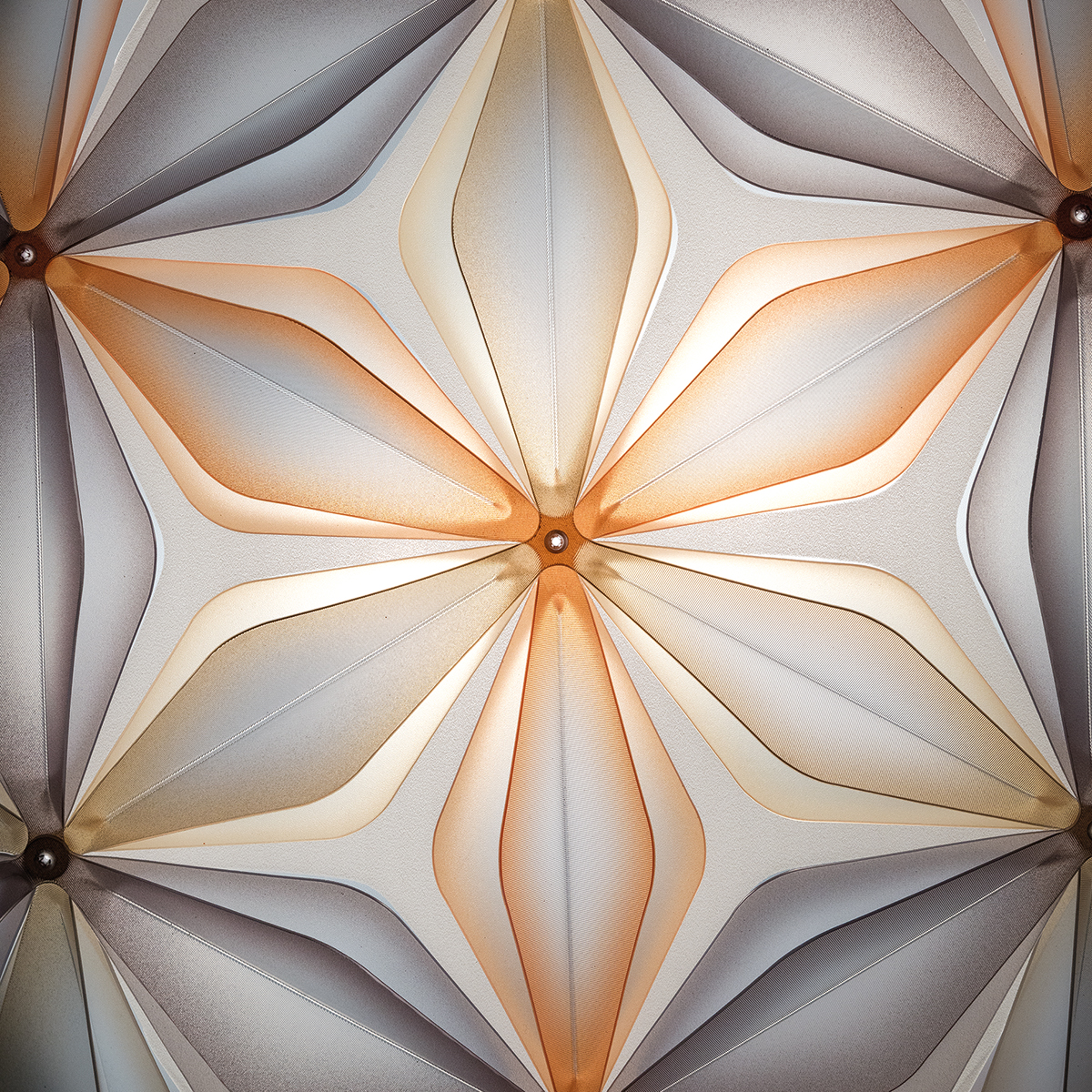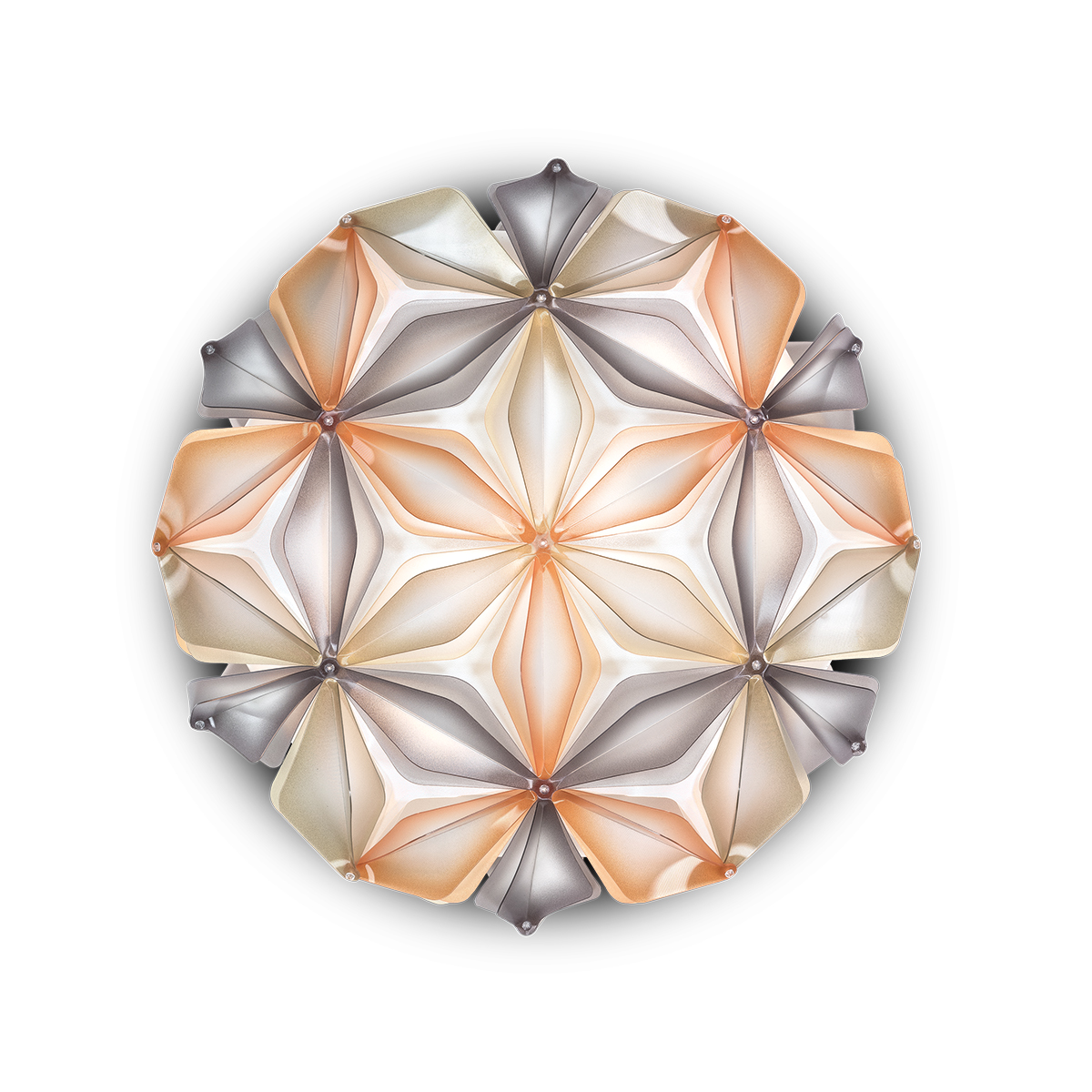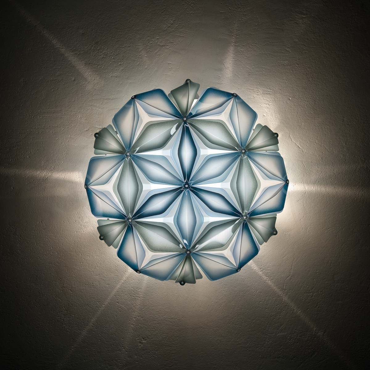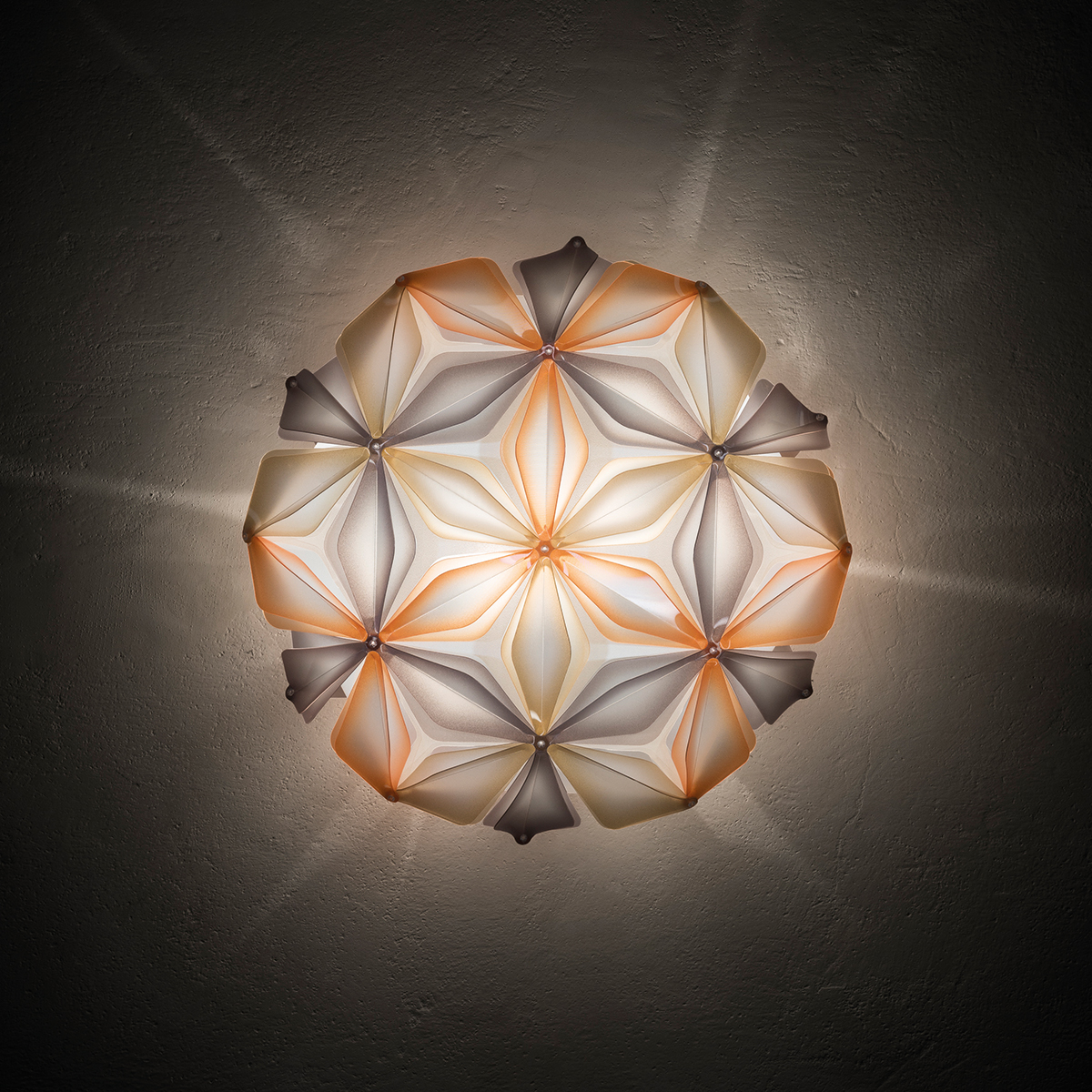 Gefertigt aus den exklusiven Technopolymeren Opalflex® und Lentiflex®, beeindruckt die La Vie nicht nur durch ihre Widerstandsfähigkeit und Leichtigkeit, sondern auch durch die faszinierenden Farb- und Lichtreflexe, die sie erzeugt. Jede Lampe wird von Hand gefertigt, was sie zu einem echten Unikat macht. Die magnetische Halterung ermöglicht eine mühelose Montage und Reinigung, während das vielschichtige Design sowohl an Wänden als auch Decken perfekt zur Geltung kommt.