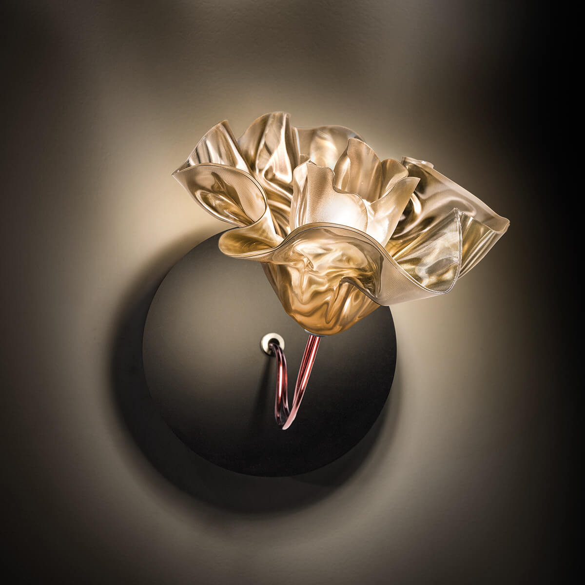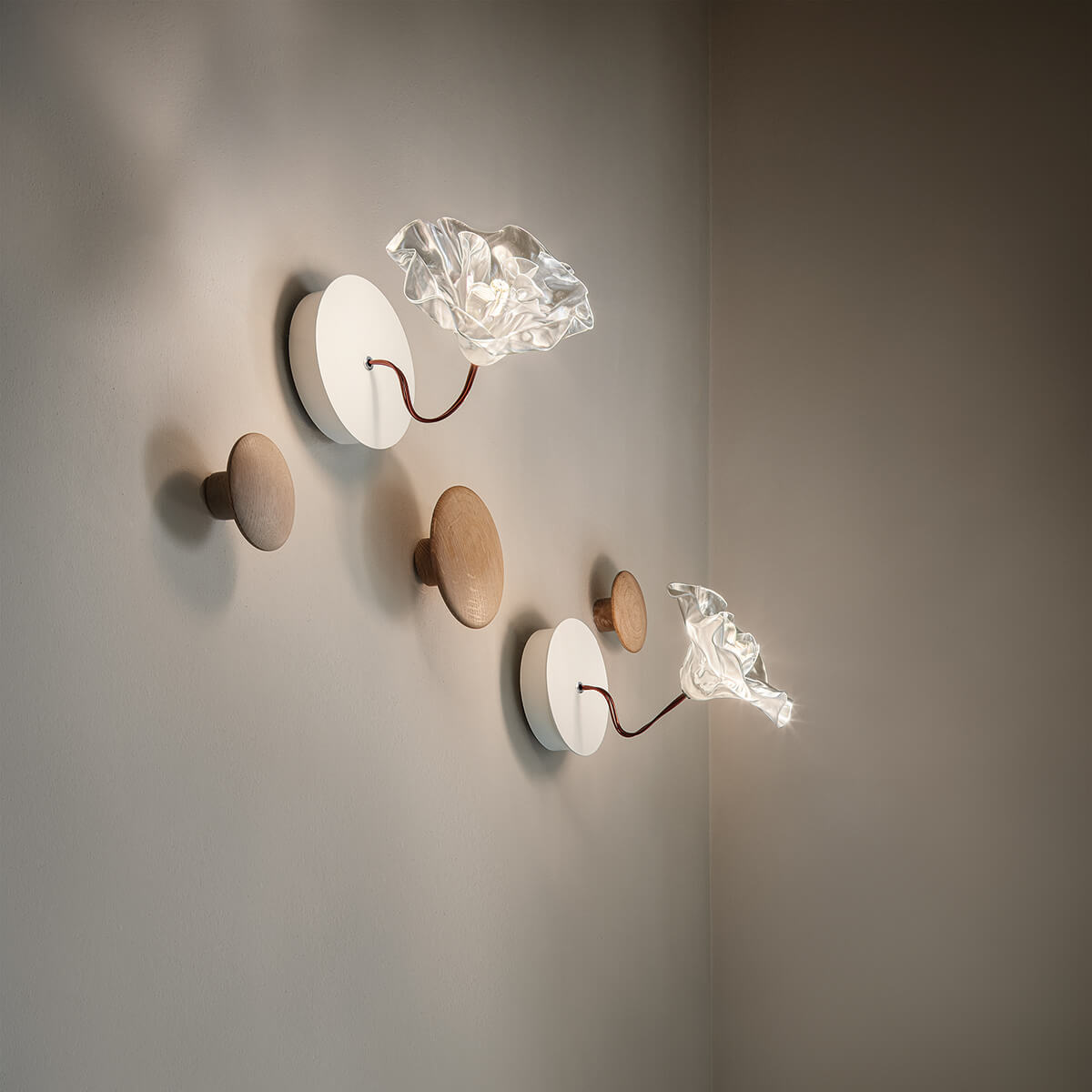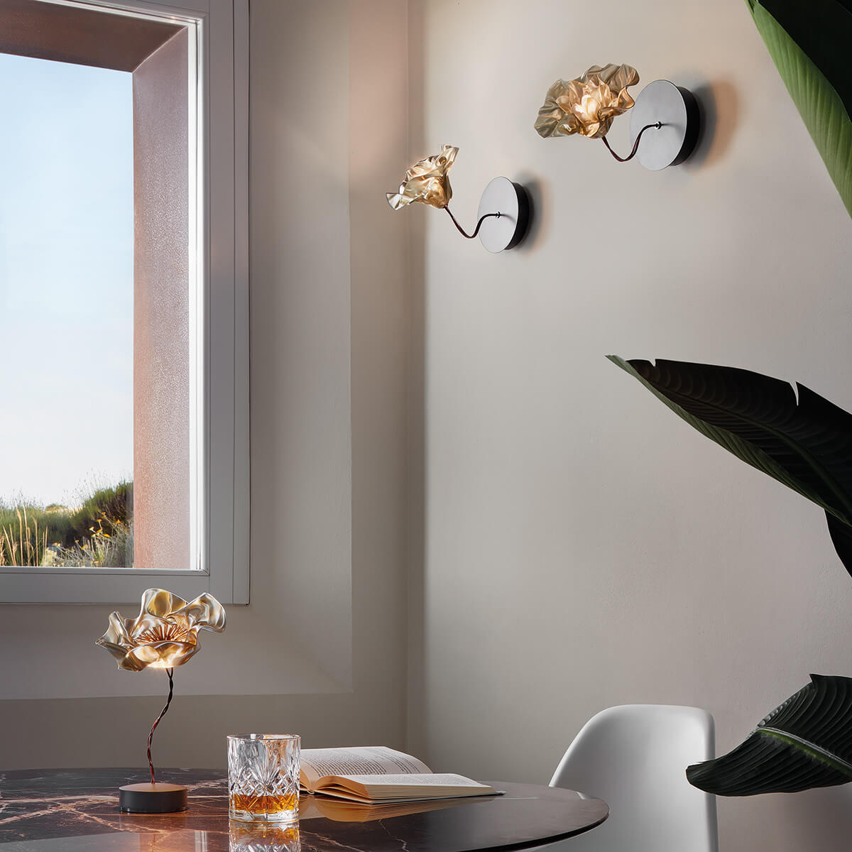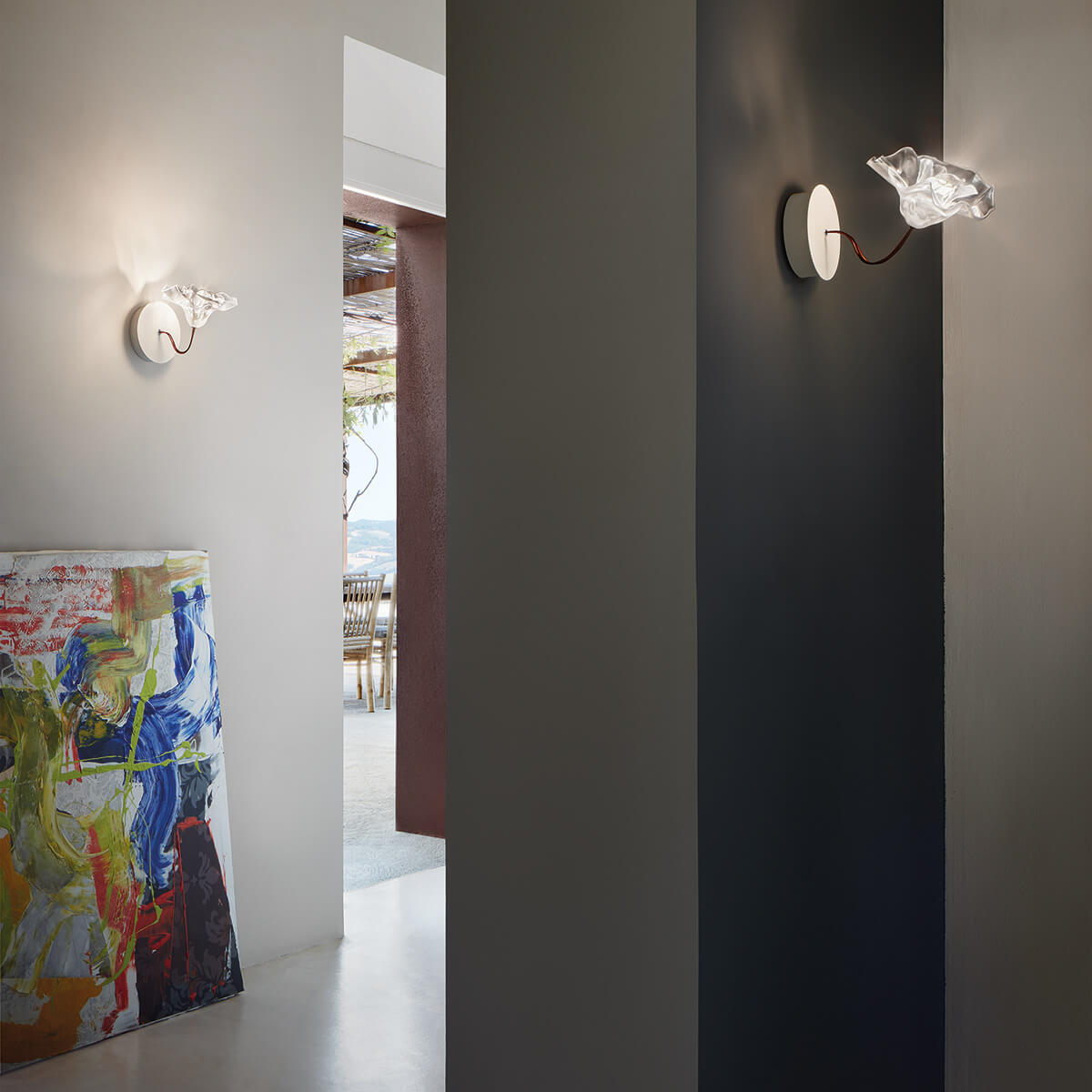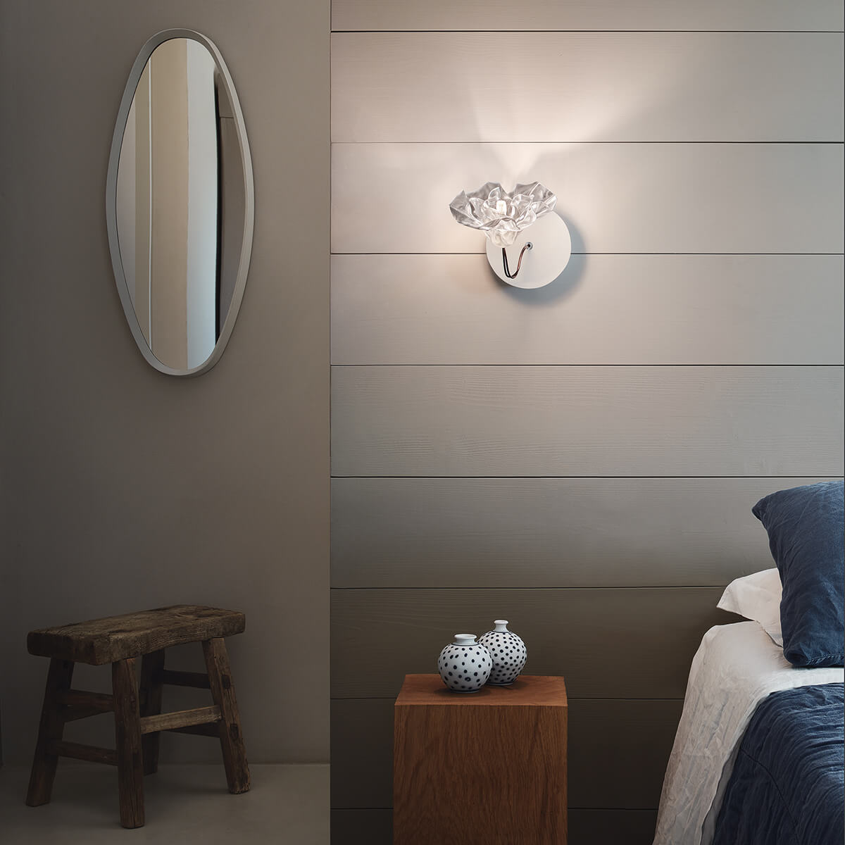 Das Ergebnis ist ein warmer Schimmer von poetischer Qualität, der die Leuchte vor allem im Korridor oder Eingangsbereich zu einem echten Blickfang macht. Nicht weniger schön macht sich die LaFleur Applique neben dem Bett, wo sie als originelle Alternative zur Nachttischlampe für eine behagliche Beleuchtung sorgt.