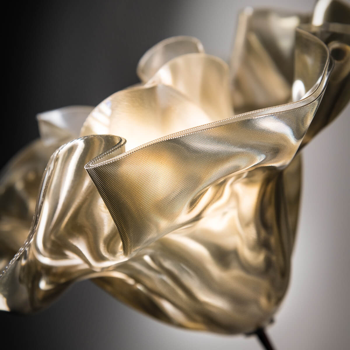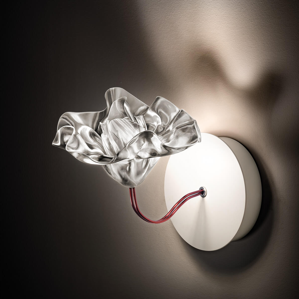 Die attraktive Slamp LaFleur Applique Wandleuchte ist eine Hommage an den Frühling. Der Leuchtenschirm ist der Gestalt einer Blütenkrone nachempfunden und besteht aus mehreren von Hand geformten, schimmernden Kunststoffschichten. Die Lichtquelle, eine austauschbare LED-Lampe, sitzt im Zentrum der Blütenkrone und lässt ihr Licht in alle Richtungen hin erstrahlen.
