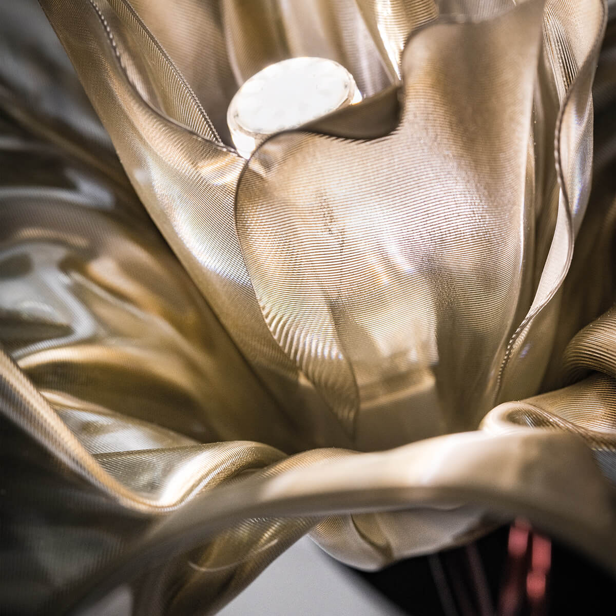 - Blüte und Draht werden von Hand modelliert – jede Leuchte ein Unikat