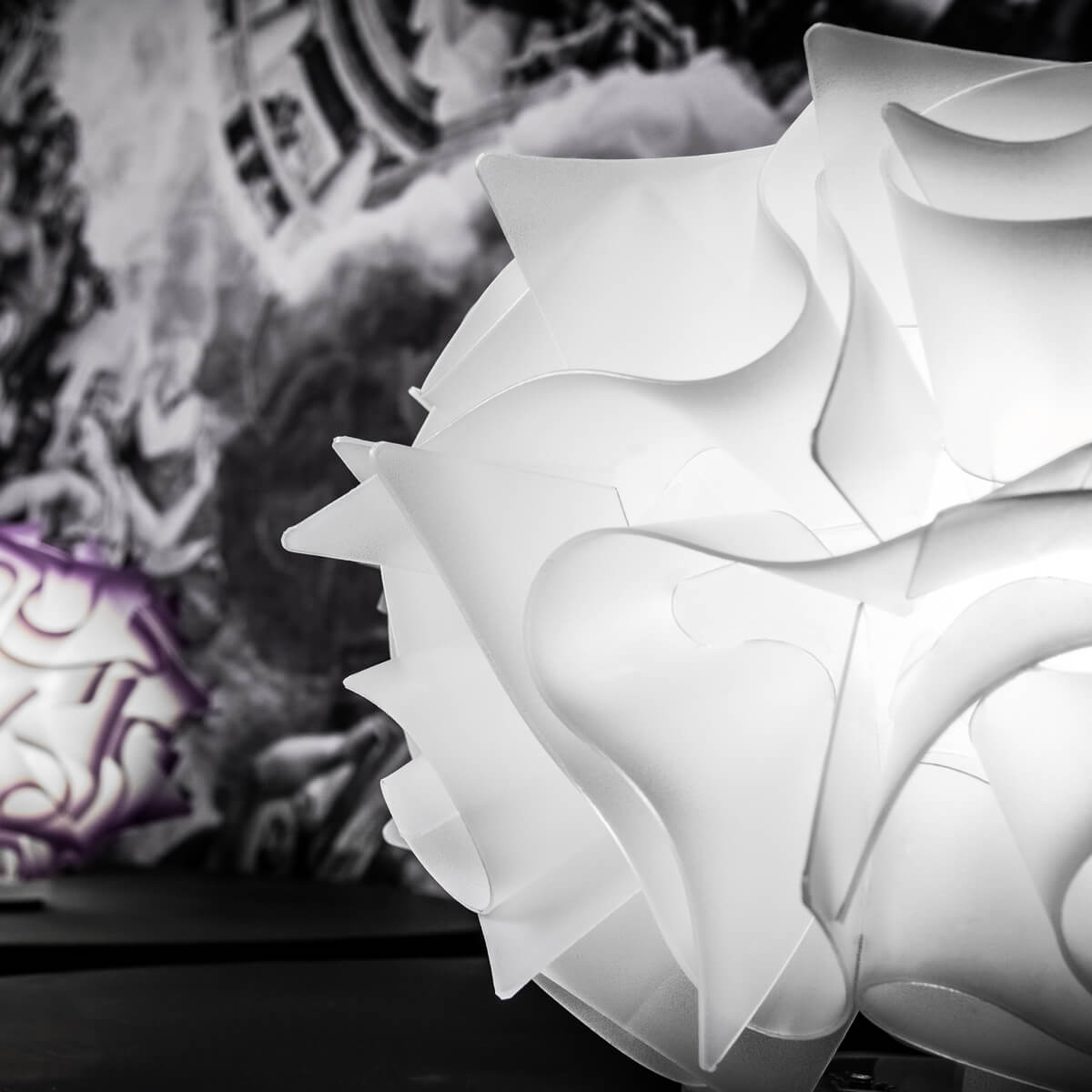 Erhältlich in Opalweiß und in der Variante Couture mit dekorativem Druck, bringt die Slamp Veli Tischleuchte einen Hauch italienischen Designs in jeden Raum. Ein stilvolles Lichtobjekt für alle, die außergewöhnliches Design, Handwerkskunst und atmosphärische Beleuchtung miteinander verbinden möchten.