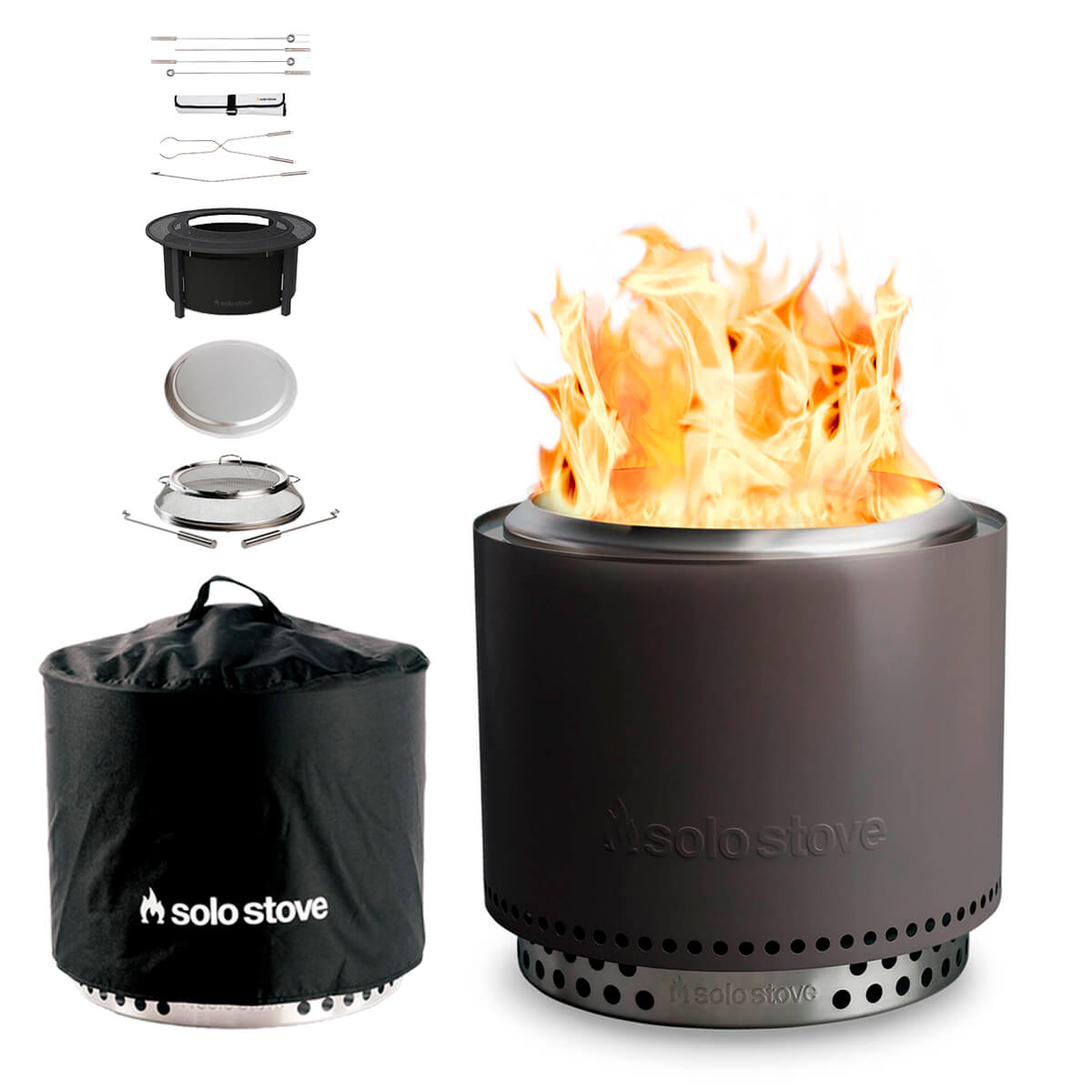 Zentrales Produkt des Premium-Sets ist die Feuerschale Bonfire 2.0, deren innovative Solo Stove 360°-Luftzirkulationstechnologie eine intensive Hitze erzeugt und die Rauchentwicklung minimiert. So verbringen Sie und Ihre Gäste gemütliche Abende am Feuer, frei von störendem Qualm. Der solide Standfuß mit Belüftungslöchern ermöglicht die sichere Platzierung auf empfindlichen Oberflächen wie Holz oder Rasen.
