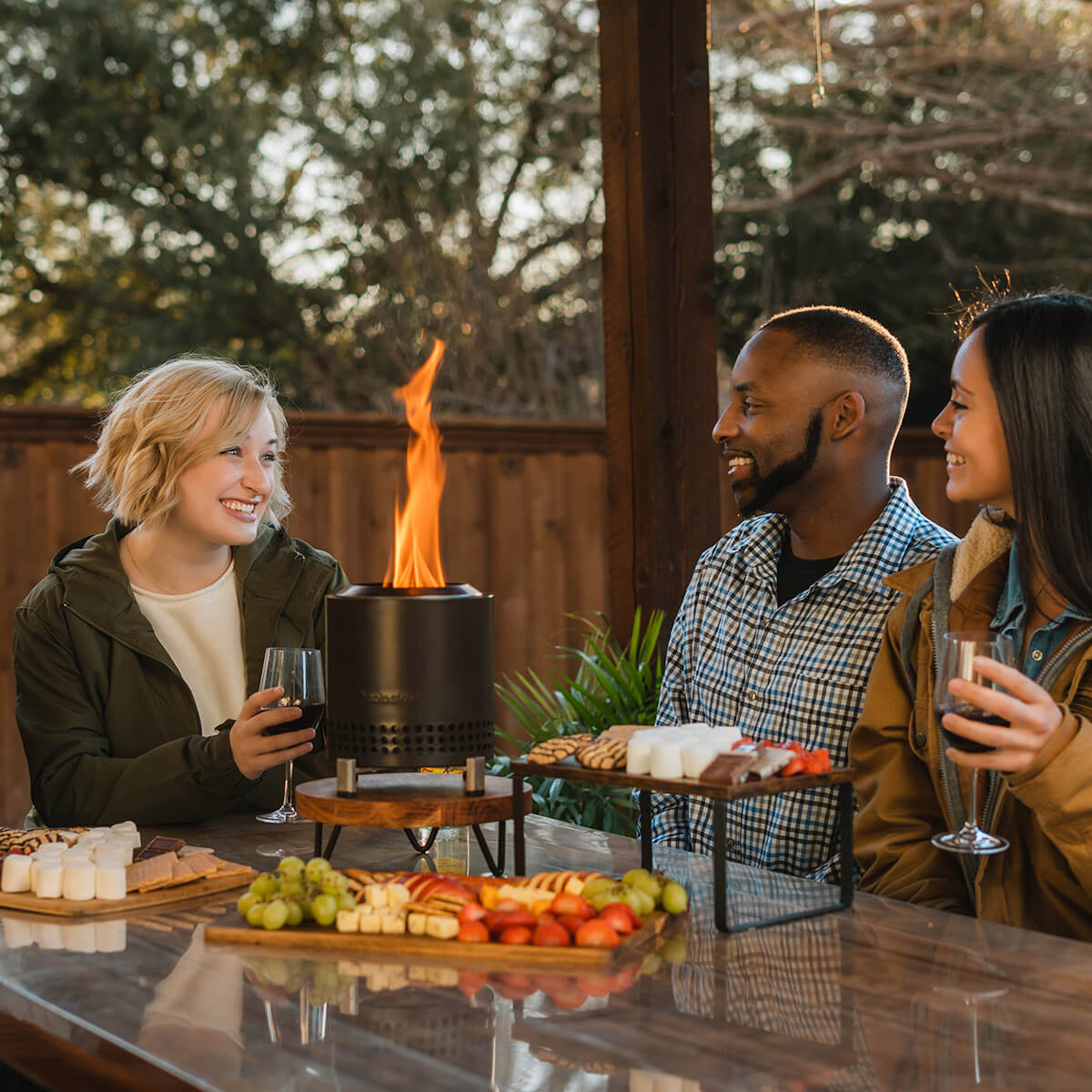 Die Mesa XL Tischfeuerstelle ist dank ihrer fortschrittlichen, raucharmen Verbrennungstechnologie ideal für den Einsatz auf Terrassen oder Balkonen im Innenstadtbereich. Die Technik sorgt dafür, dass Luft durch die unteren Öffnungen des Tischfeuers einströmt und sich zwischen der Doppelwand erhitzt. Die darauffolgende sekundäre Verbrennung verbrennt kleine Holzpartikel, die sonst als Rauch entweichen würden, und führt zu einer sauberen und effizienten Wärmequelle.