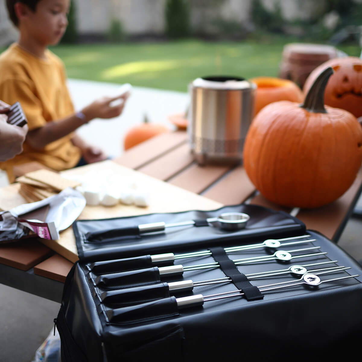 Erleben Sie Lagerfeuer-Feeling pur – im Kleinformat! Mit dem Mesa XL Zubehör-Set von Solo Stove haben Sie alles, was Sie für maximalen Genuss rund um Ihr Mesa Tischfeuer brauchen. Das hochwertige Set aus Edelstahlwerkzeugen hebt Ihre Abende auf das nächste Level und verbindet die Zeit am Feuer mit Spaß und leckeren gerösteten Snacks.
