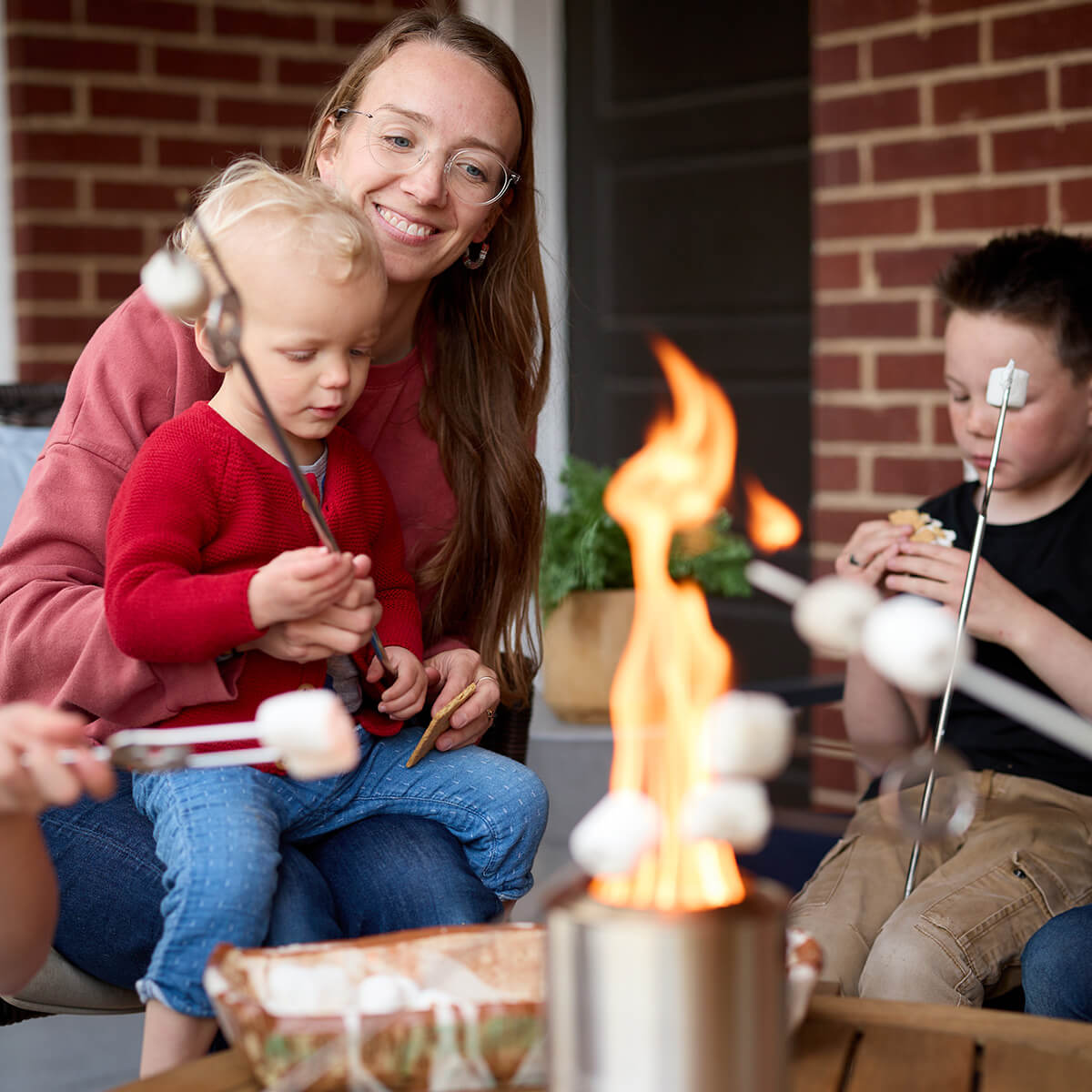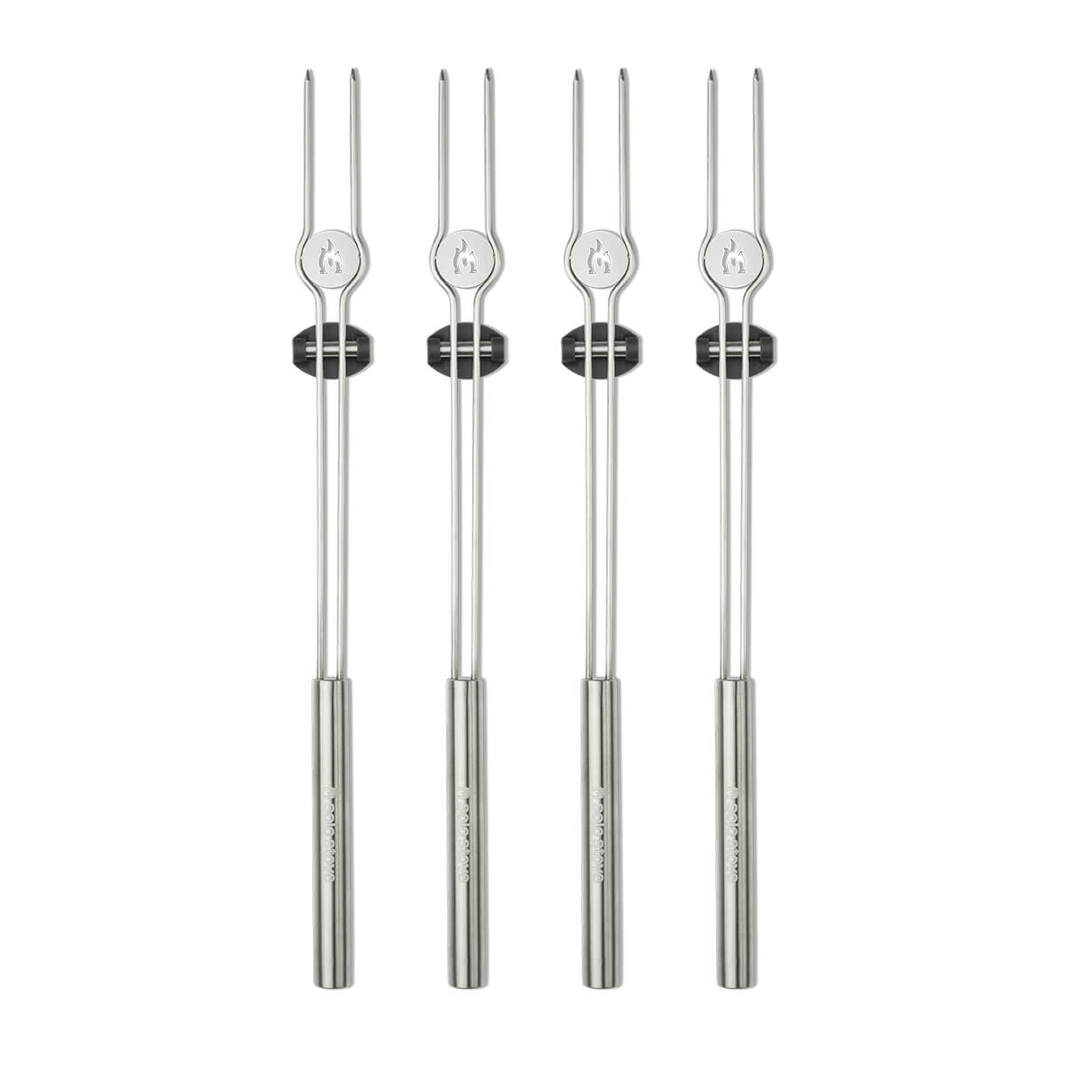 Das Mesa Accessory Pack enthält vier Mini-Grillspieße, die perfekt zu Ihrem Mesa XL Tischkamin passen. Sie begeistern mit ihrem ergonomischen, langlebigen Design und können dazu genutzt werden, Marshmallows oder Waffeln über dem Tischfeuer zu rösten. Komplettiert werden die Spieße durch die mitgelieferten Ablagen, auf denen sie ruhen können, um vor allem empfindliche Oberflächen nicht zu beschmutzen.