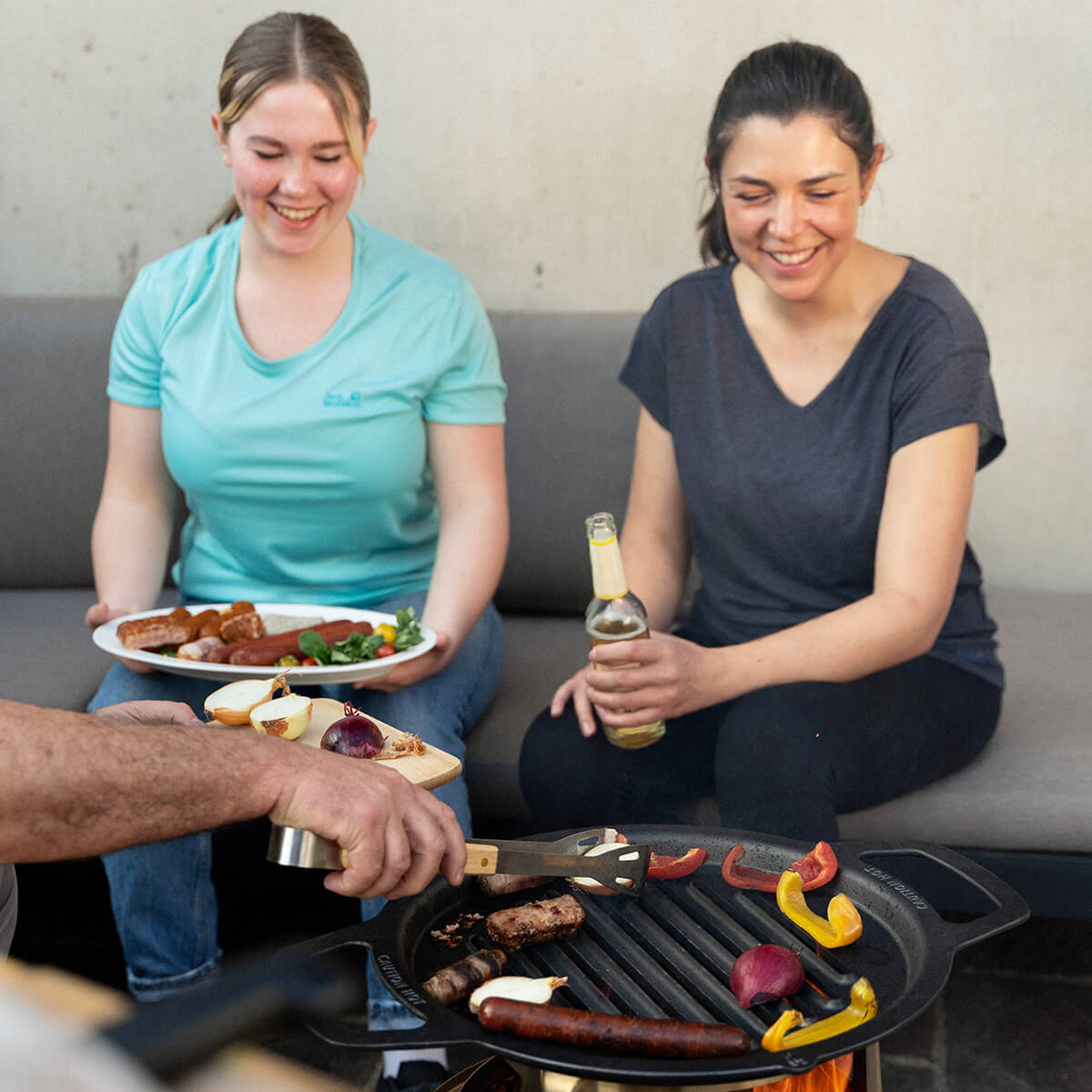 Bevor Sie den Grillrost verwenden, sollten Sie ihn wie eine Gusseisenpfanne einbrennen. Nach acht bis zehn Einbrennvorgängen entwickelt sich die vollständige Antihaft-Qualität und der Rost ist bereit für den Einsatz über der Feuerstelle. Für die besten Grillergebnisse sorgt ein flaches Glutbett in der Brennkammer Ihrer Feuerschale, wobei die Flammen nur ein paar Zentimeter hoch sein sollten.