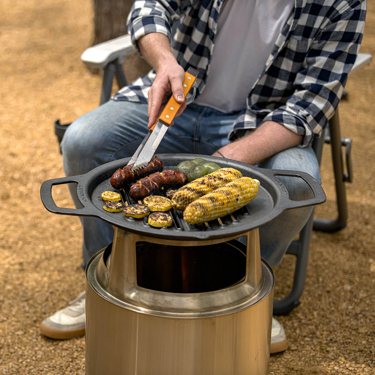 Mit dem Cooking Bundle aus Gusseisen-Grillrost und Edelstahl-Aufsatz verwandeln Sie Ihre Solo Stove Ranger Feuerschale im Handumdrehen in einen vielseitigen Grill. Das modulare Ranger Kochsystem kombiniert die Freude am Outdoor-Kochen mit einem innovativen Design und bietet eine sichere und beeindruckende Möglichkeit, Speisen über dem offenen Feuer zuzubereiten – im heimischen Garten oder auf Reisen.