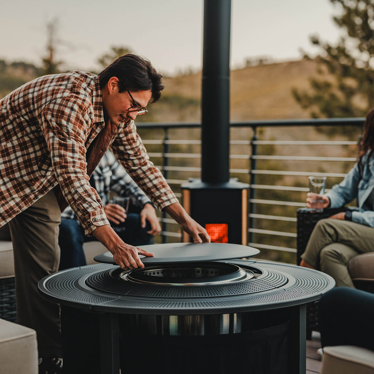 Die leicht gewölbte Oberseite des Deckels ergänzt das elegante Design des Surround Feuerschalentischs und bietet eine stabile Plattform, um Aufschnittplatten, Vorspeisen und mehr zu kredenzen. Nach dem Schmaus kann der Deckel einfach abgenommen werden, um das Feuer Ihrer Ranger, Yukon oder Bonfire Feuerschale zu entzünden.