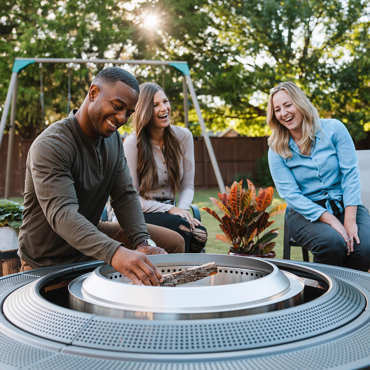 Auch mit dem Surround Large können Sie sämtliche Feuerschalen-Zubehörteile von Solo Stove nutzen. Von Grillplatten über Grillspieße bis hin zum Funkenschutz – genießen Sie das vielseitige Lagerfeuererlebnis Ihrer Yukon Feuerstelle. Achten Sie jedoch darauf, den Wärmeverteiler nur mit den längeren Beinen zu verwenden, um eine Überhitzung der Tischoberfläche zu vermeiden. Der Yukon Standfuß sollte nicht zusammen mit dem Feuerschalentisch benutzt werden.