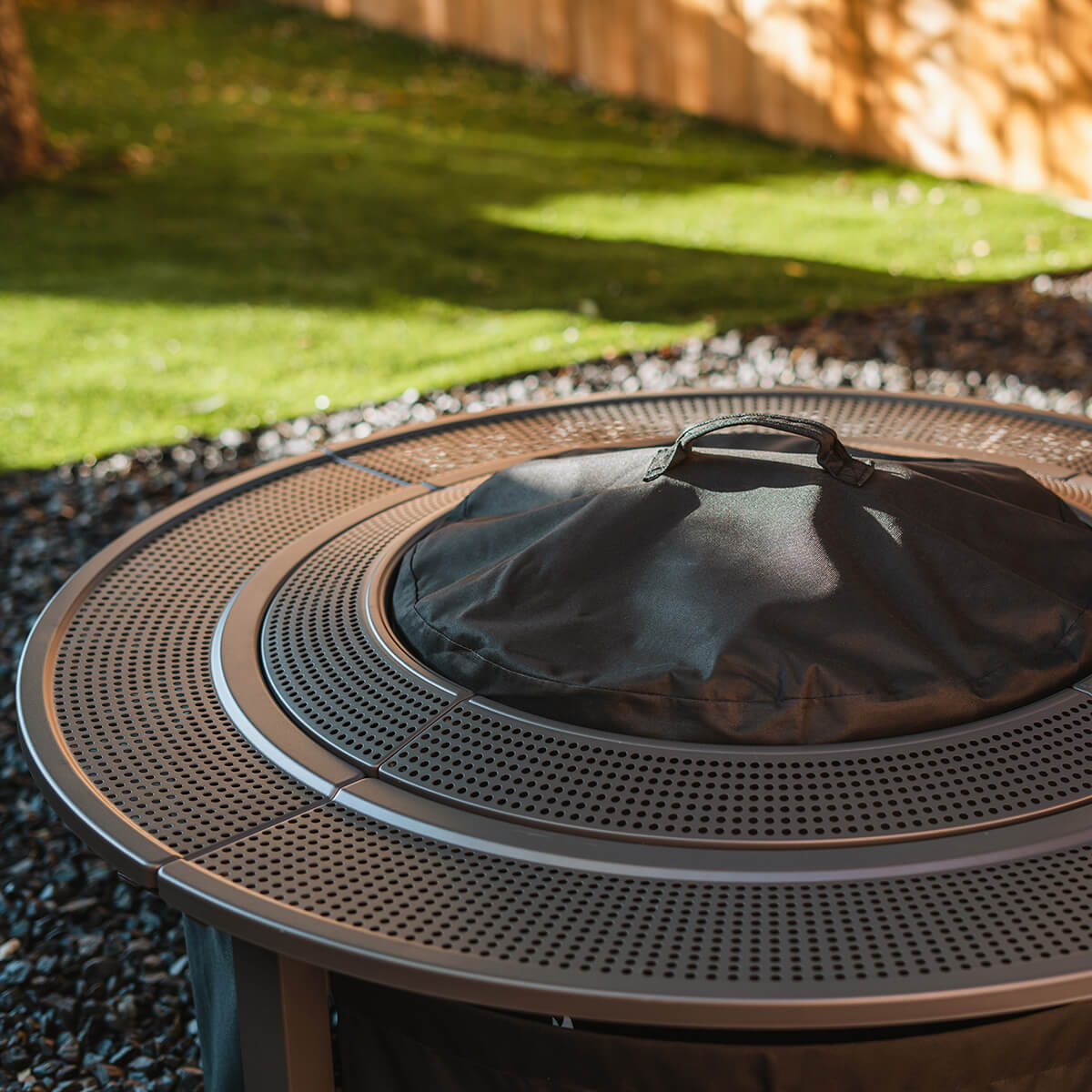 Mit seiner 360°-Schutzbarriere schützt der Surround Kinder und Haustiere vor dem direkten Kontakt mit dem lodernden Feuer. Die Barriere sorgt nicht nur für Sicherheit, sondern bietet auch eine praktische Ablagefläche für Getränke, Grillgut und Snacks. Durch die perforierte Oberfläche wird die Wärmeübertragung von der zentralen Feuerschale auf die Tischplatte minimiert, sodass Sie die Ablage auch dann nutzen können, wenn das Feuer brennt.