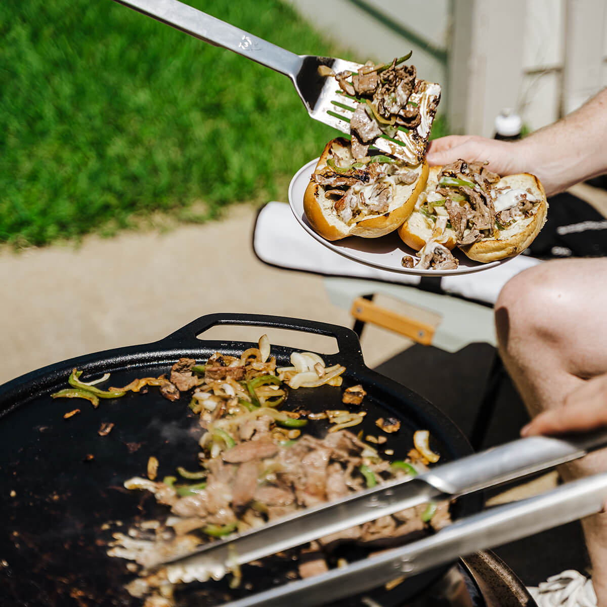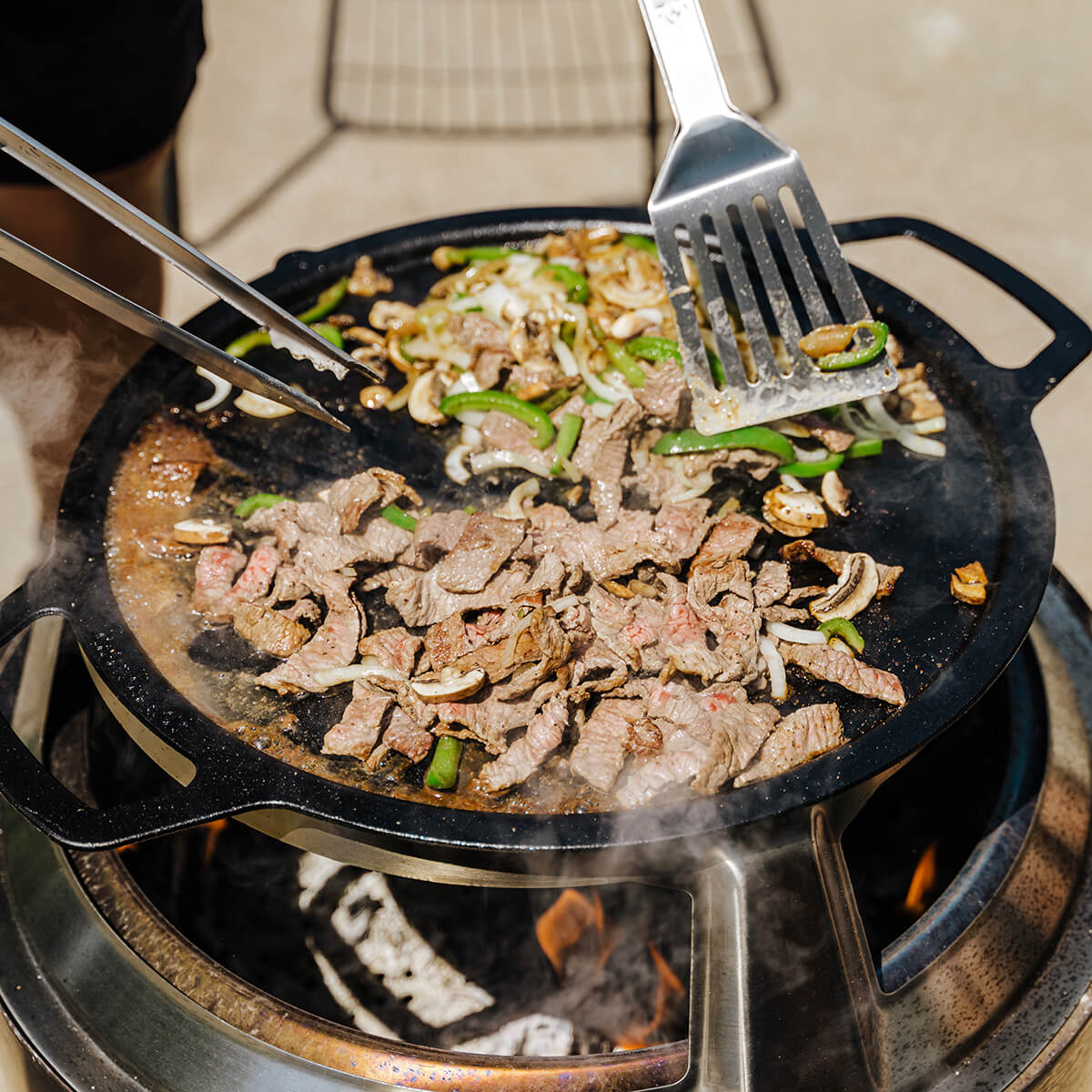Die Gusseisen-Plancha ermöglicht es Ihnen, eine Vielzahl an Speisen zu grillen – direkt über dem offenen Feuer. Beginnen Sie den Tag mit einem herzhaften Frühstück aus Spiegeleiern, Bacon und Pfannkuchen. Für das Abendessen lassen sich auf der Plancha schmackhafte Köfte-Spieße, Fajitas, Shrimps und mediterranes Grillgemüse zubereiten. Die geschlossene Oberfläche ist ideal für fettiges Grillgut wie Chorizo, da kein Fett verloren geht und eine gleichmäßige Bräunung sichergestellt wird.