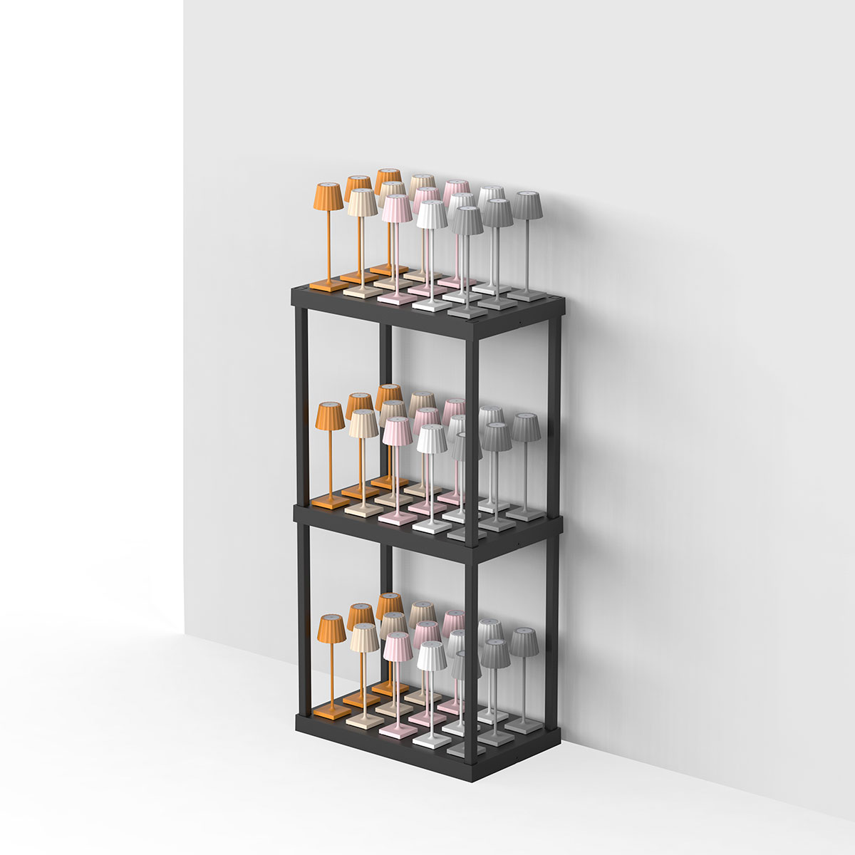 Das Besondere: Die Ladestation lässt sich modular erweitern. Bis zu drei Einheiten (jeweils Art.-Nr. 96996) können übereinandergestapelt werden – und machen aus einer Station ein kompaktes Lade-Regal mit bis zu 45 Ladeplätzen. Die stabile Kunststoffkonstruktion in elegantem Schwarz bleibt dabei äußerst platzsparend und fügt sich harmonisch in jede professionelle Umgebung ein – ob hinter der Bar, im Lager oder im Technikraum.