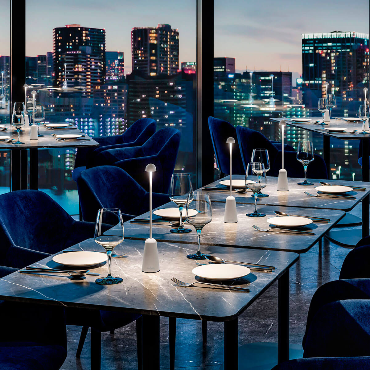 - Schlanke Akkulampe mit einem standfestem Sockel aus veredeltem Aluminium