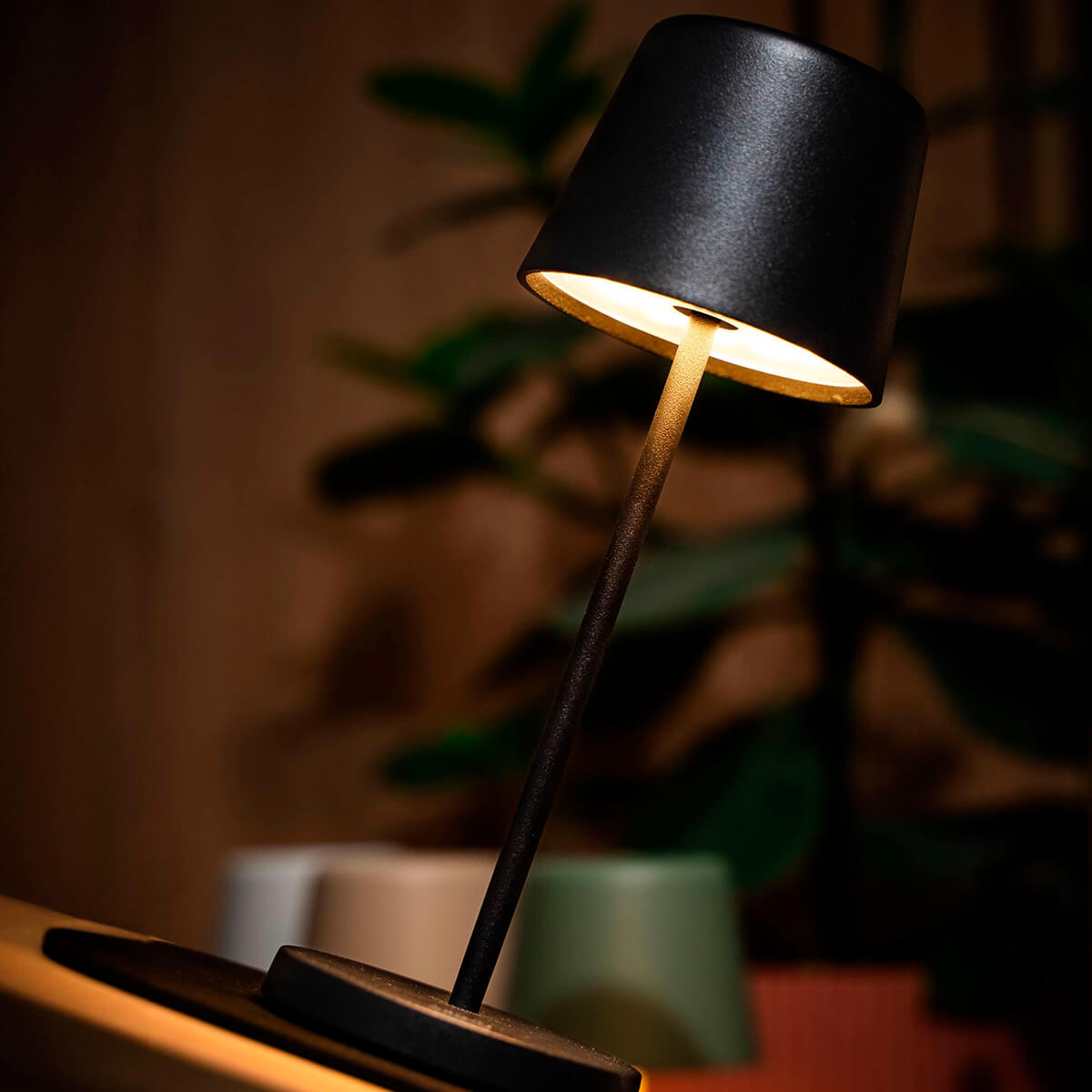 - Kabellose Akku-Tischlampe in zeitlosen Farboberflächen