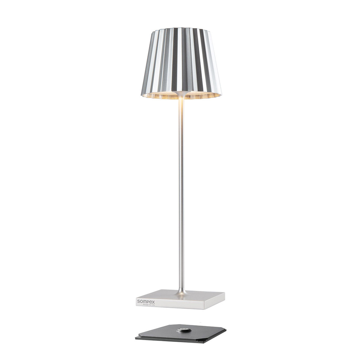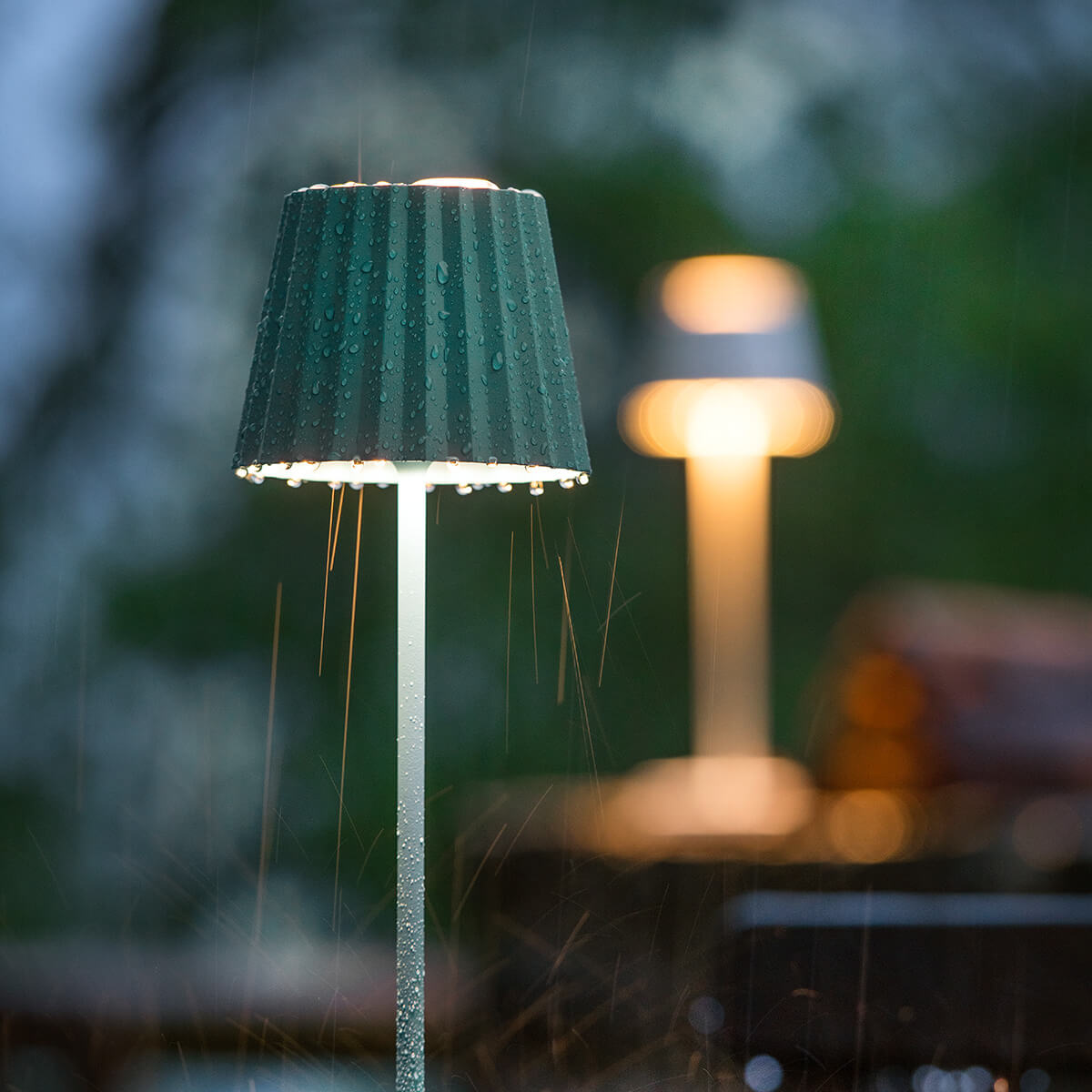 Mit der Sompex Troll 2.0 erhalten Sie eine vielseitig einsetzbare Tischlampe, deren Plissee-Schirm ihr einen unverwechselbaren Look verleiht. Aus hochwertigem Aluminium gefertigt und IP54-klassifiziert, ist die Lampe nicht nur für den Innenbereich geeignet, sondern auch für Outdoor-Anwendungen. Dank des leistungsstarken Akkus können Sie bis zu 24 Stunden kabelloses Licht genießen – ideal für Gartenpartys oder ausgedehnte Sommerabende im Freien.