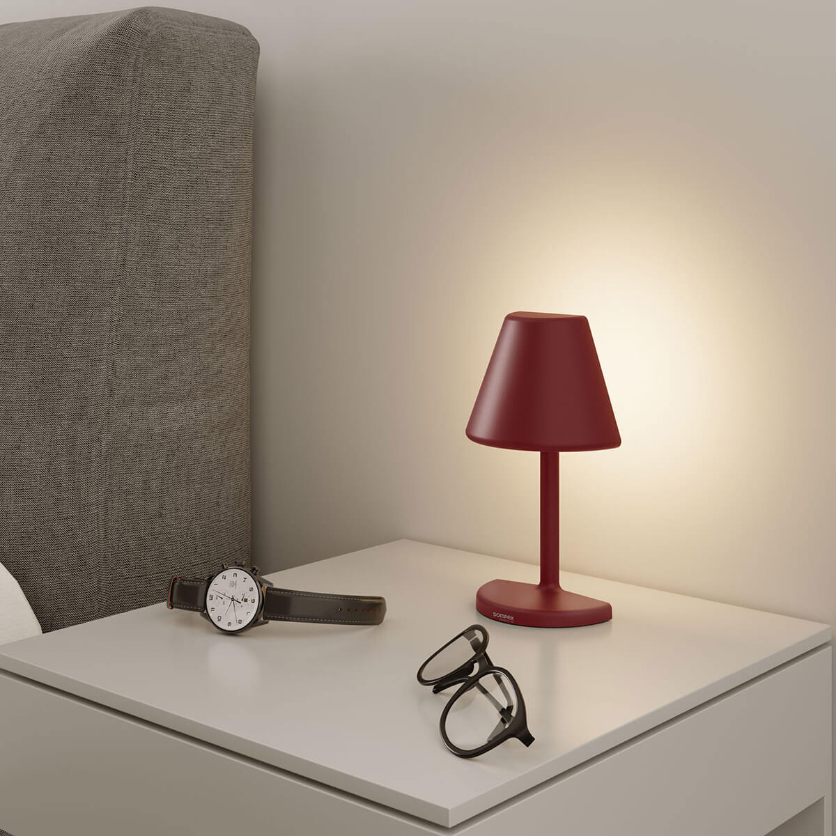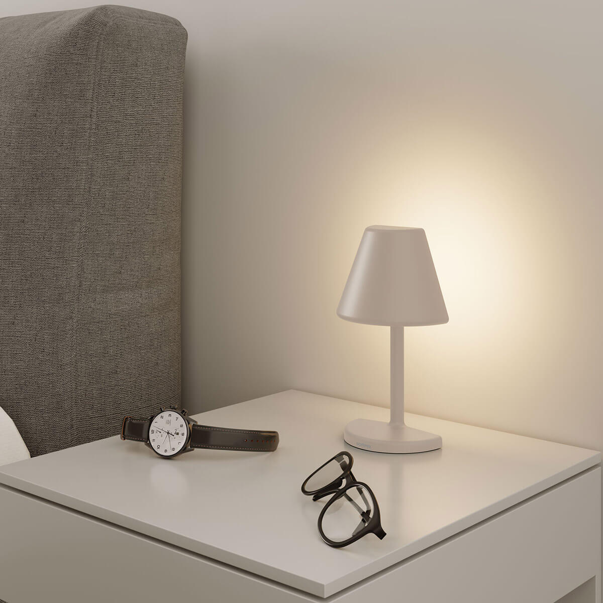Die halbe Form der Twin LED Akkulampe ist nicht nur ein optisches Highlight, sondern auch funktional durchdacht. Sie ermöglicht es, dass das indirekt von der Leuchte ausstrahlende Licht auf einzigartige Weise von den umgebenden Wandflächen reflektiert wird. Das Ergebnis ist eine besonders warme und einladende Atmosphäre im Raum. Diese Eigenschaft macht die Twin zu einem perfekten Begleiter für entspannende Abende daheim.
