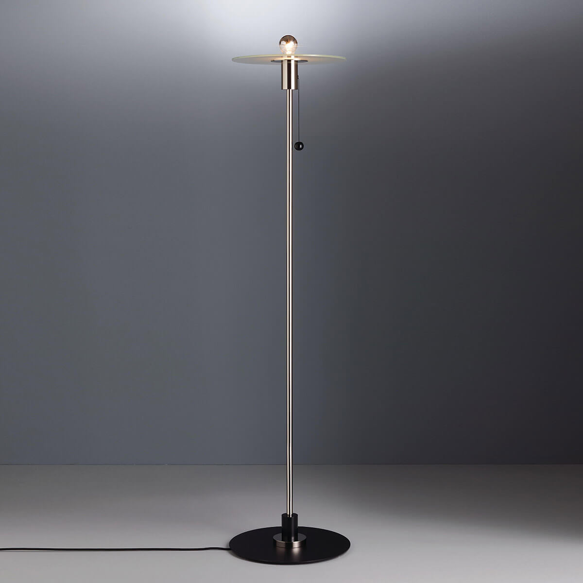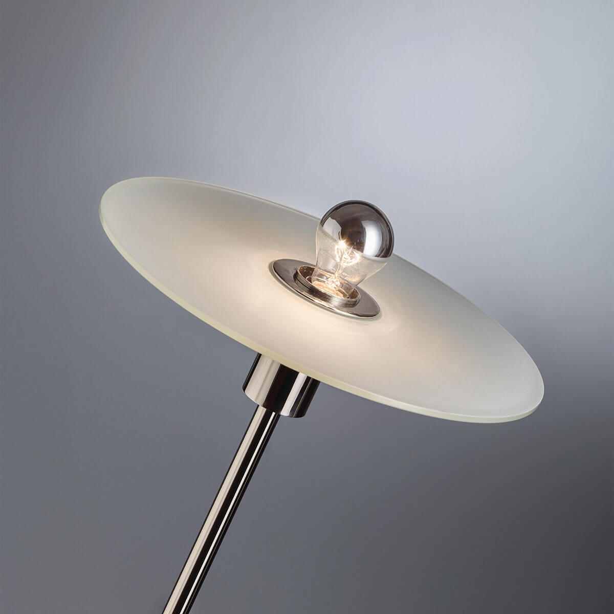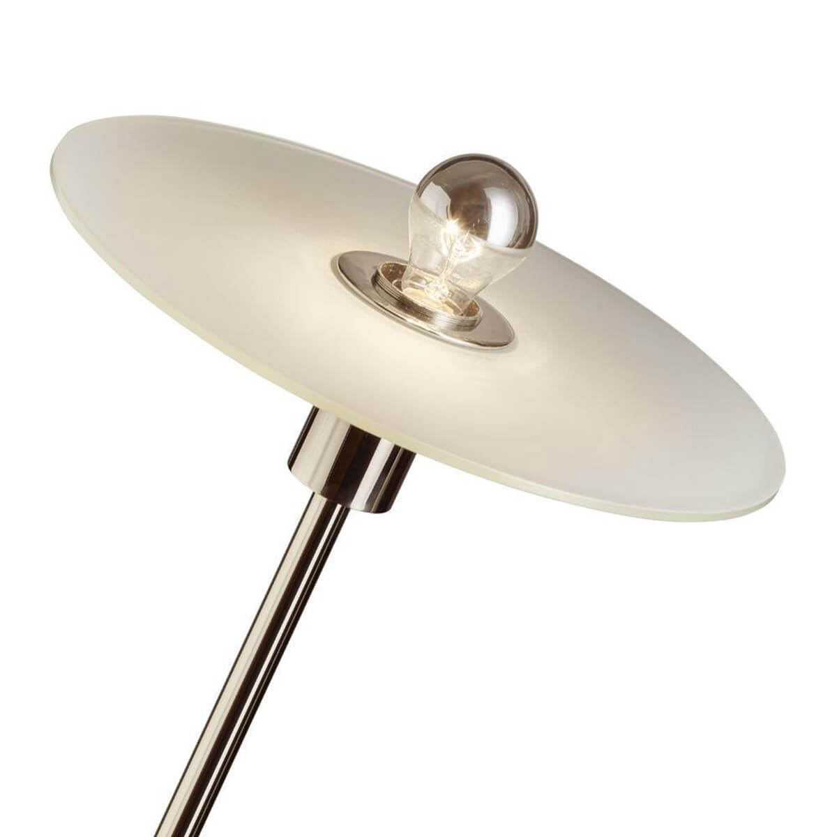 | Material/surface: | Nickel-plated brass, base: black lacquered iron, shade: Etched frosted glass pane |