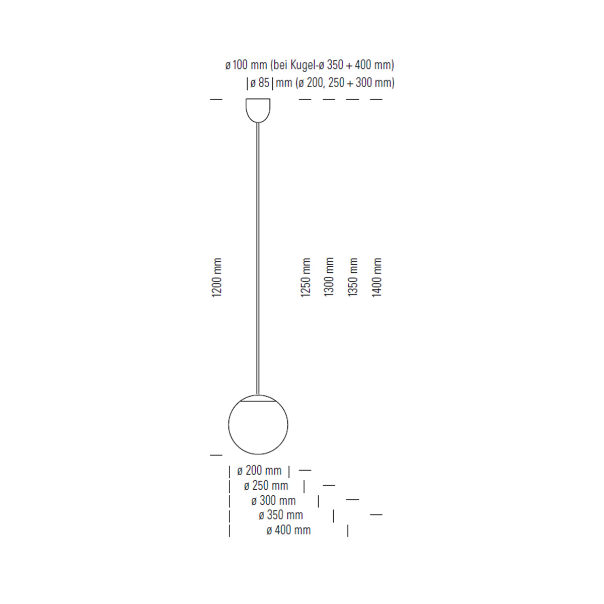 Die Tecnolumen HL 99 Pendelleuchte mit Opalkugel verfügt über ein 1 Meter langes Rohr in Chrom oder poliertem Messing. Möchten Sie die Pendellänge kürzen, können Sie dies einfach durch Absägen des Rohres realisieren, da der Aufhänger die Stange ohne Gewinde hält.